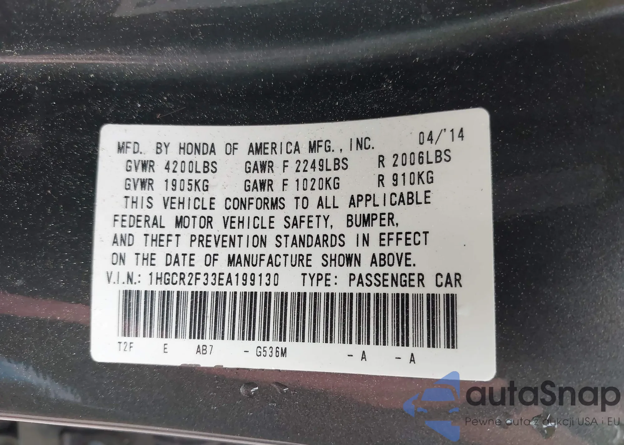 VIN: 1HGCR2F33EA199130