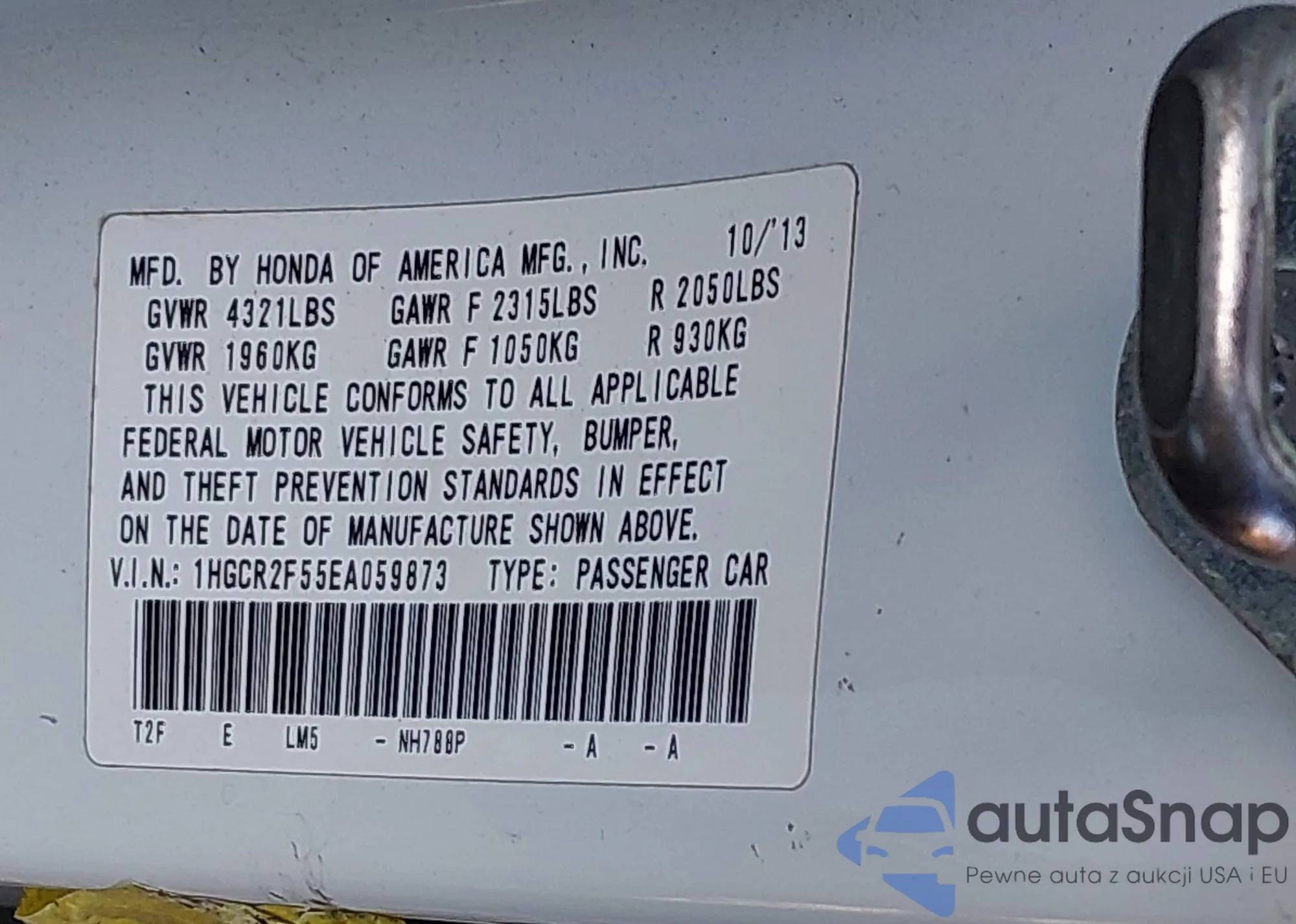 The car Honda Accord 2014 (VIN 1HGCR2F55EA059873) has not been auctioned before. The documents are clean, and the mileage matches or is below the market average. Sold by an insurance company – we recommend purchase. Delivery to the port will take approx. 6–8 weeks.