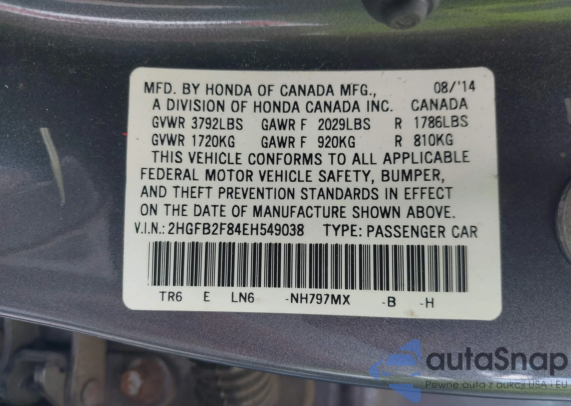 VIN: 2HGFB2F84EH549038