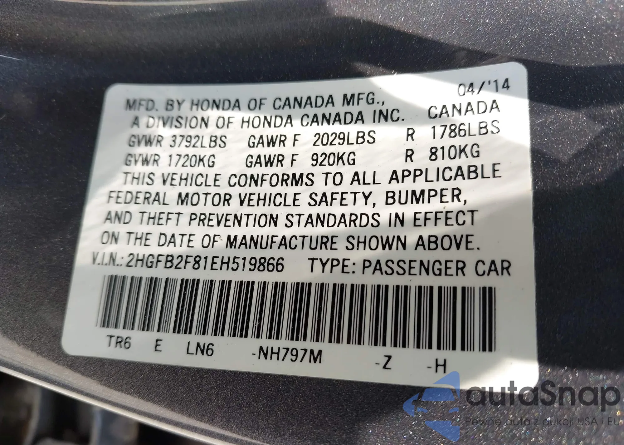 VIN: 2HGFB2F81EH519866