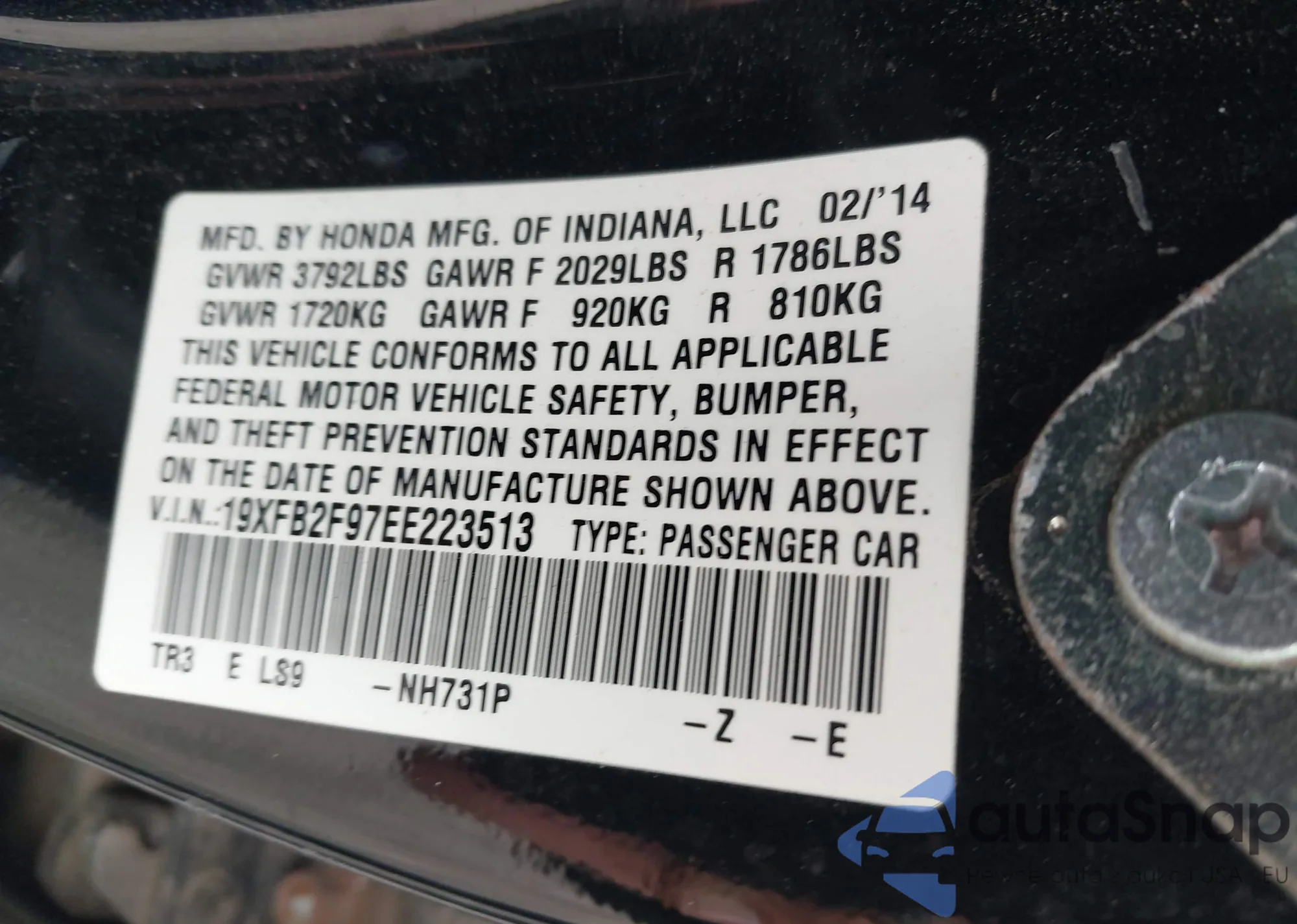 VIN: 19XFB2F97EE223513