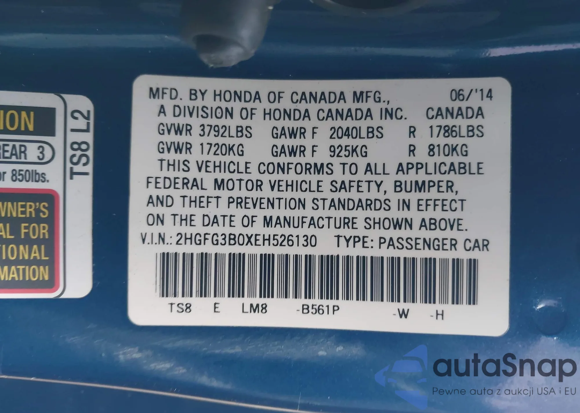 The car Honda Civic 2014 (VIN 2HGFG3B0XEH526130) has not been auctioned before. The documents are clean, and the mileage matches or is below the market average. Sold by an insurance company – we recommend purchase. Delivery to the port will take approx. 6–8 weeks.