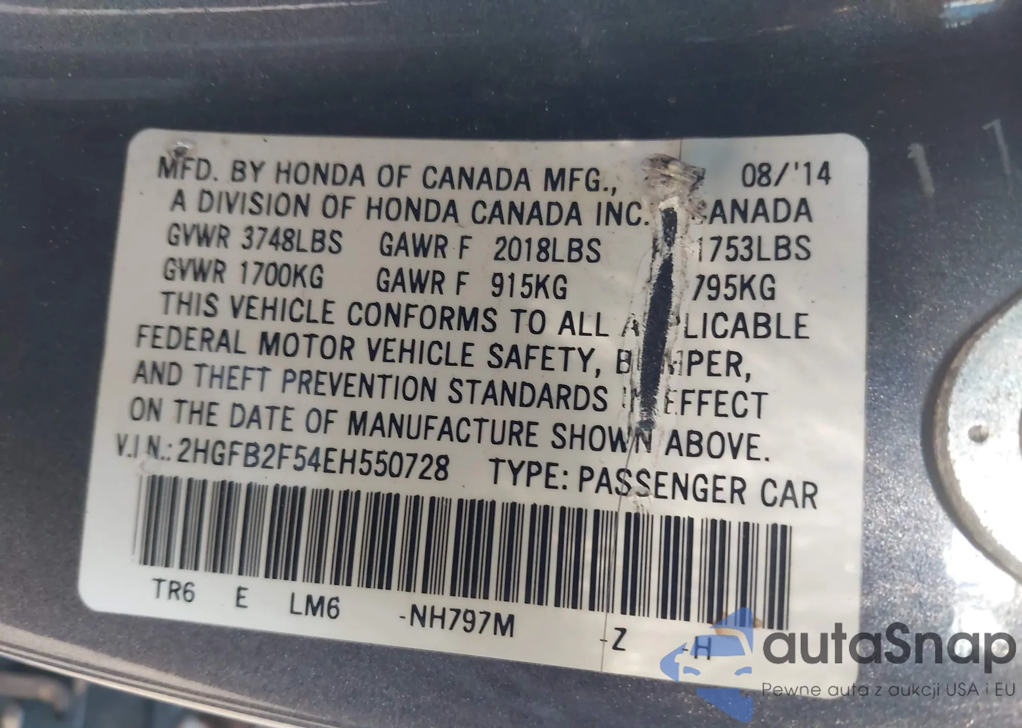 • VIN: 2HGFB2F54EH550728