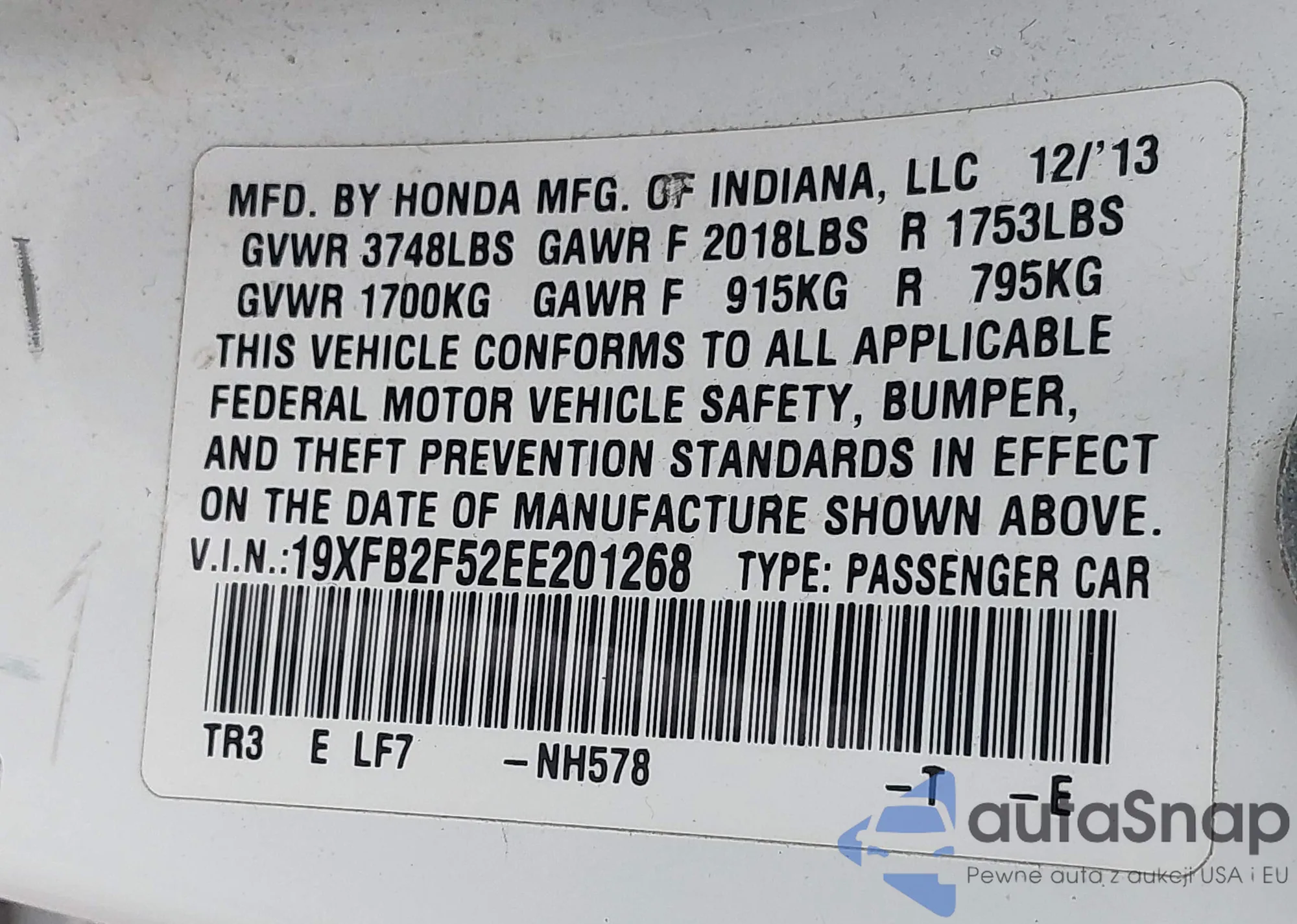 VIN: 19XFB2F52EE201268