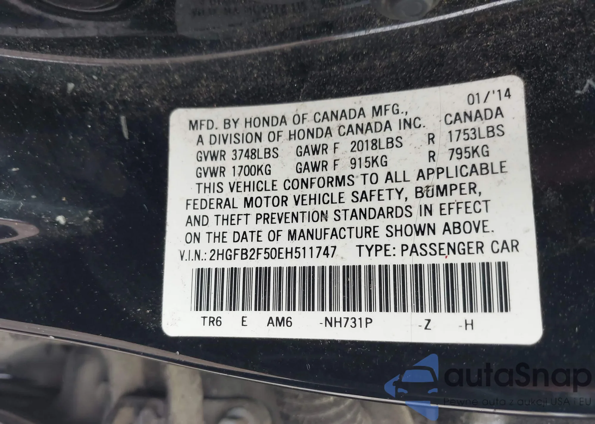 VIN: 2HGFB2F50EH511747