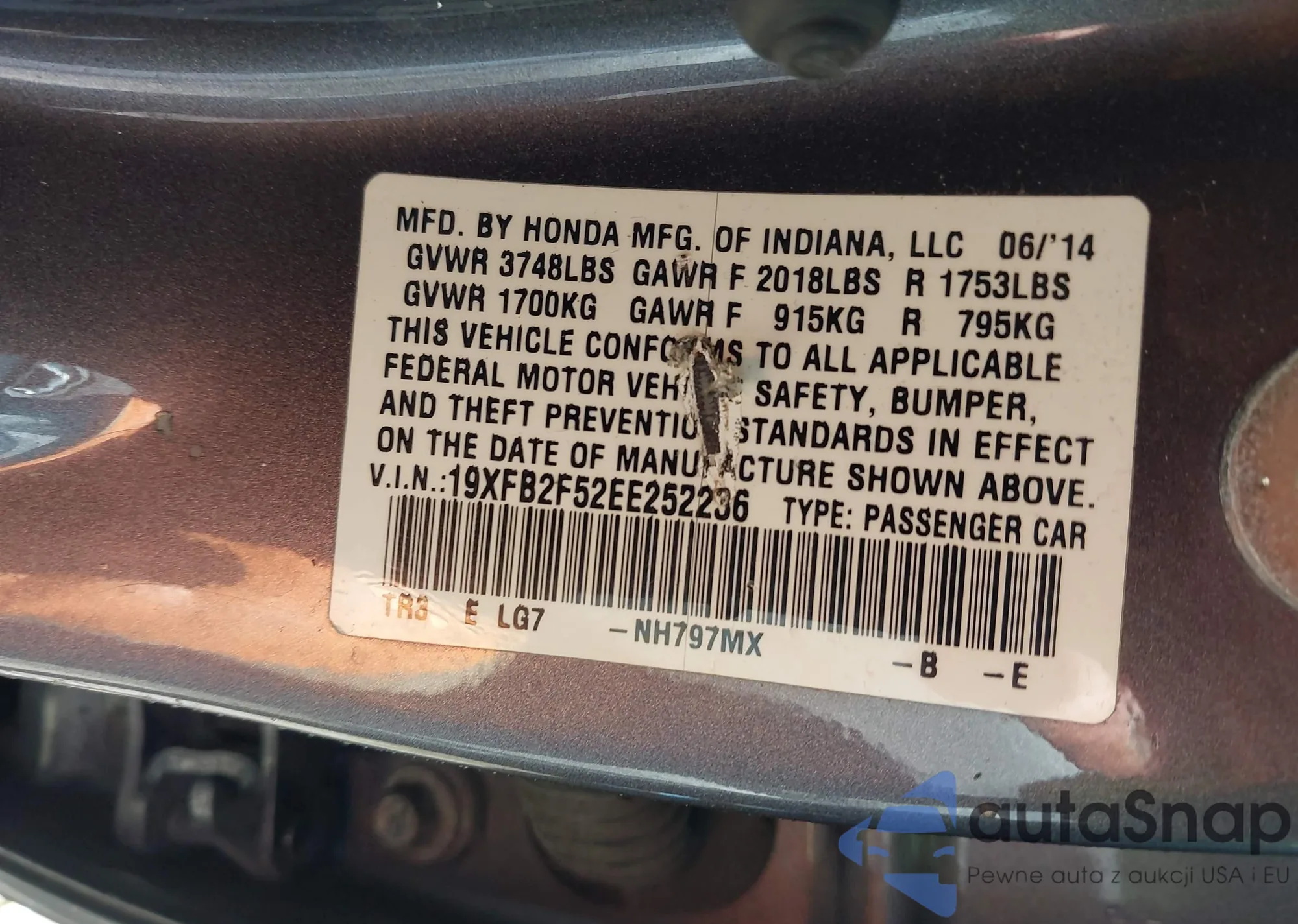 • VIN: 19XFB2F52EE252236