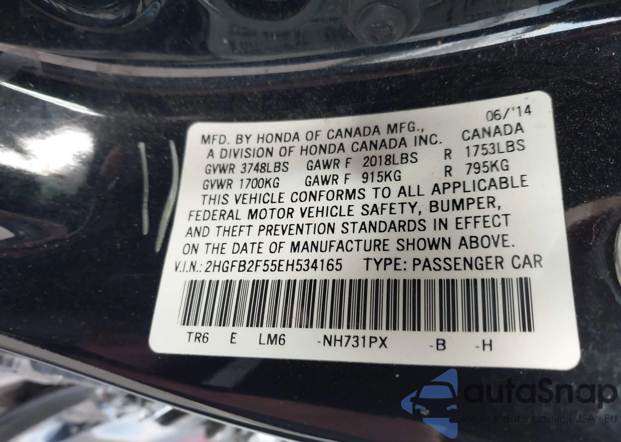 VIN: 2HGFB2F55EH534165
