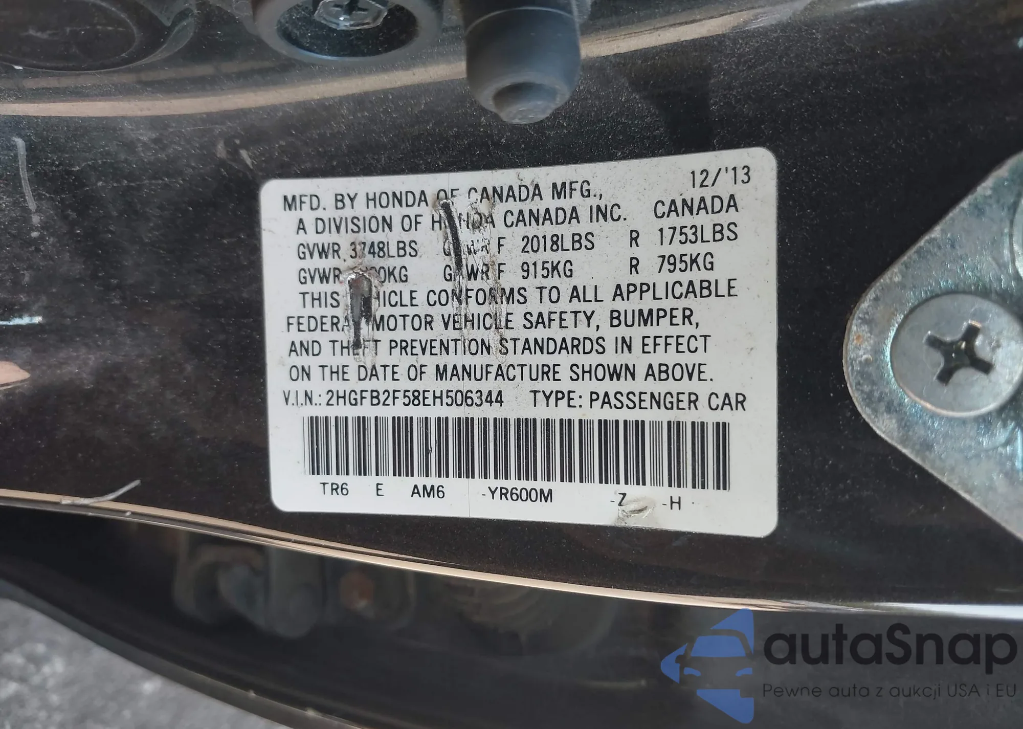 VIN: 2HGFB2F58EH506344