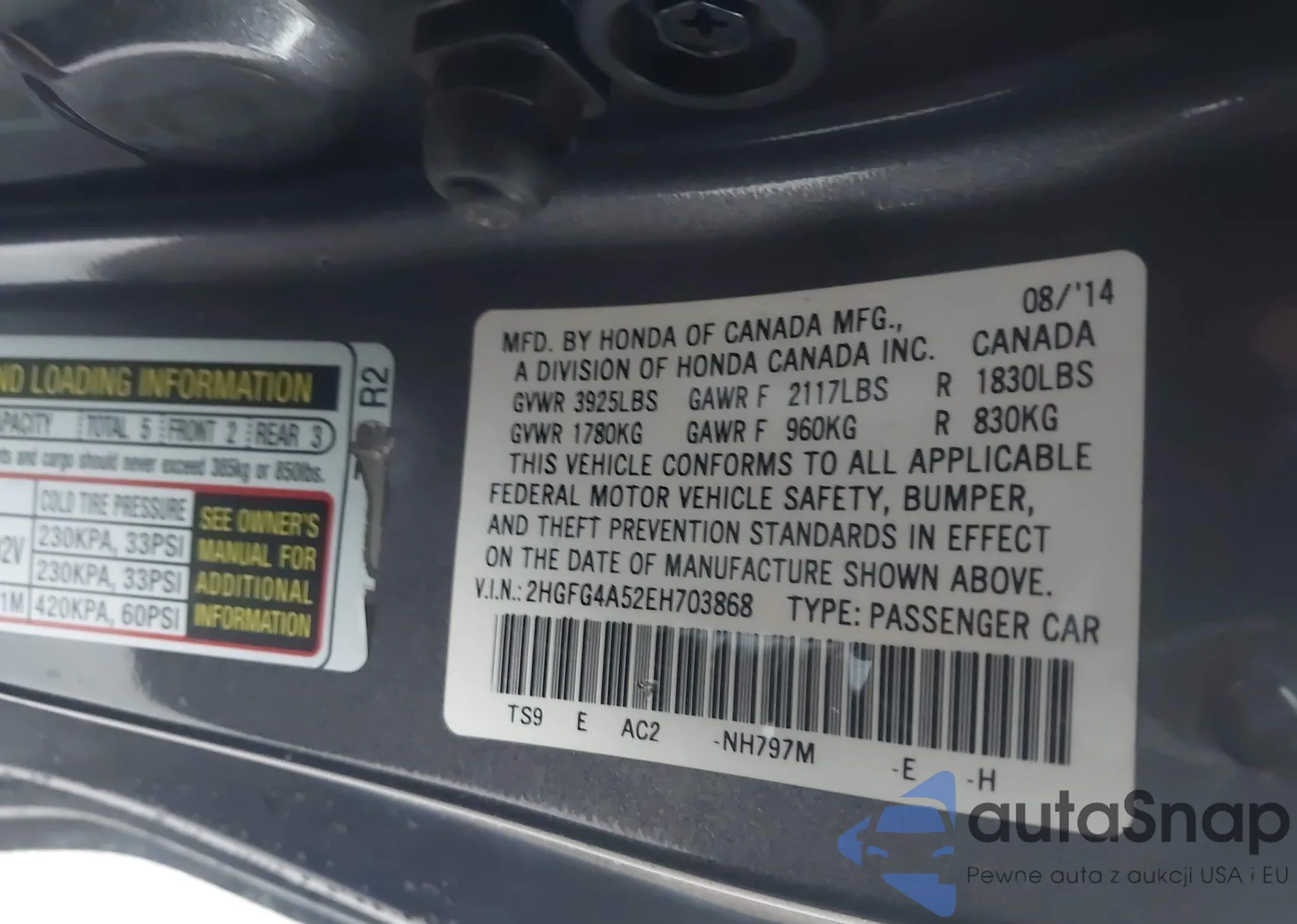 VIN: 2HGFG4A52EH703868