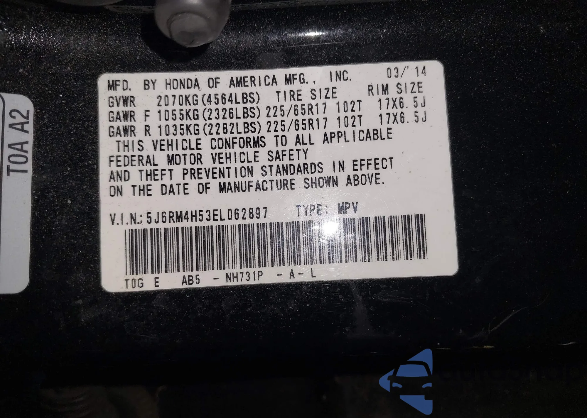 VIN: 5J6RM4H53EL062897