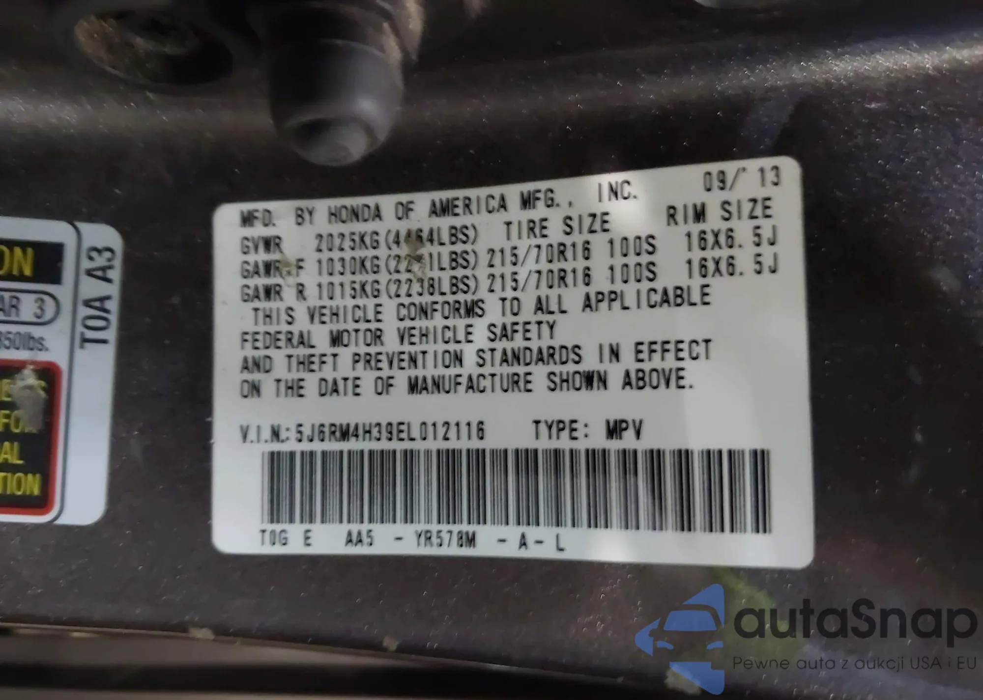 VIN: 5J6RM4H39EL012116