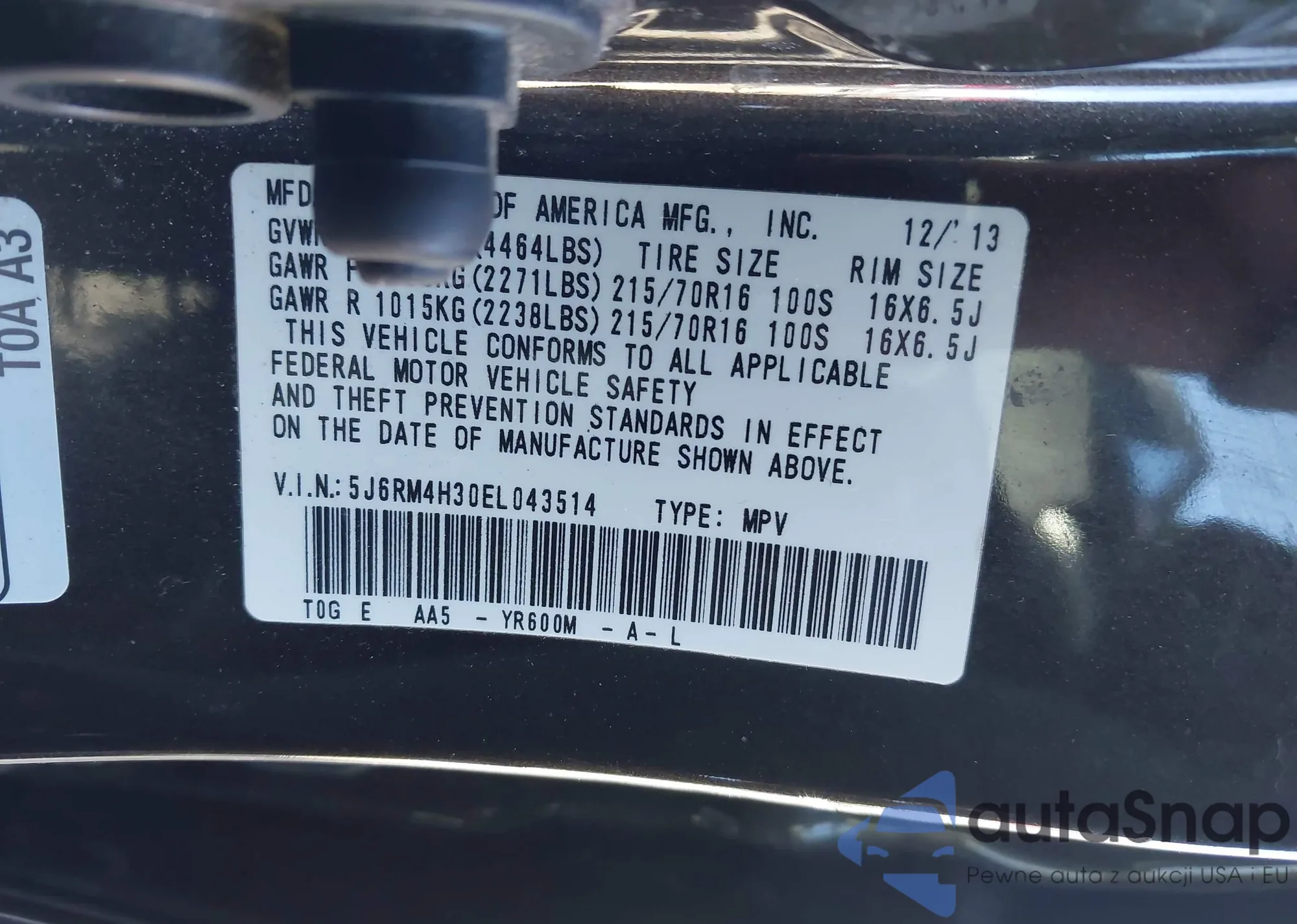 VIN: 5J6RM4H30EL043514