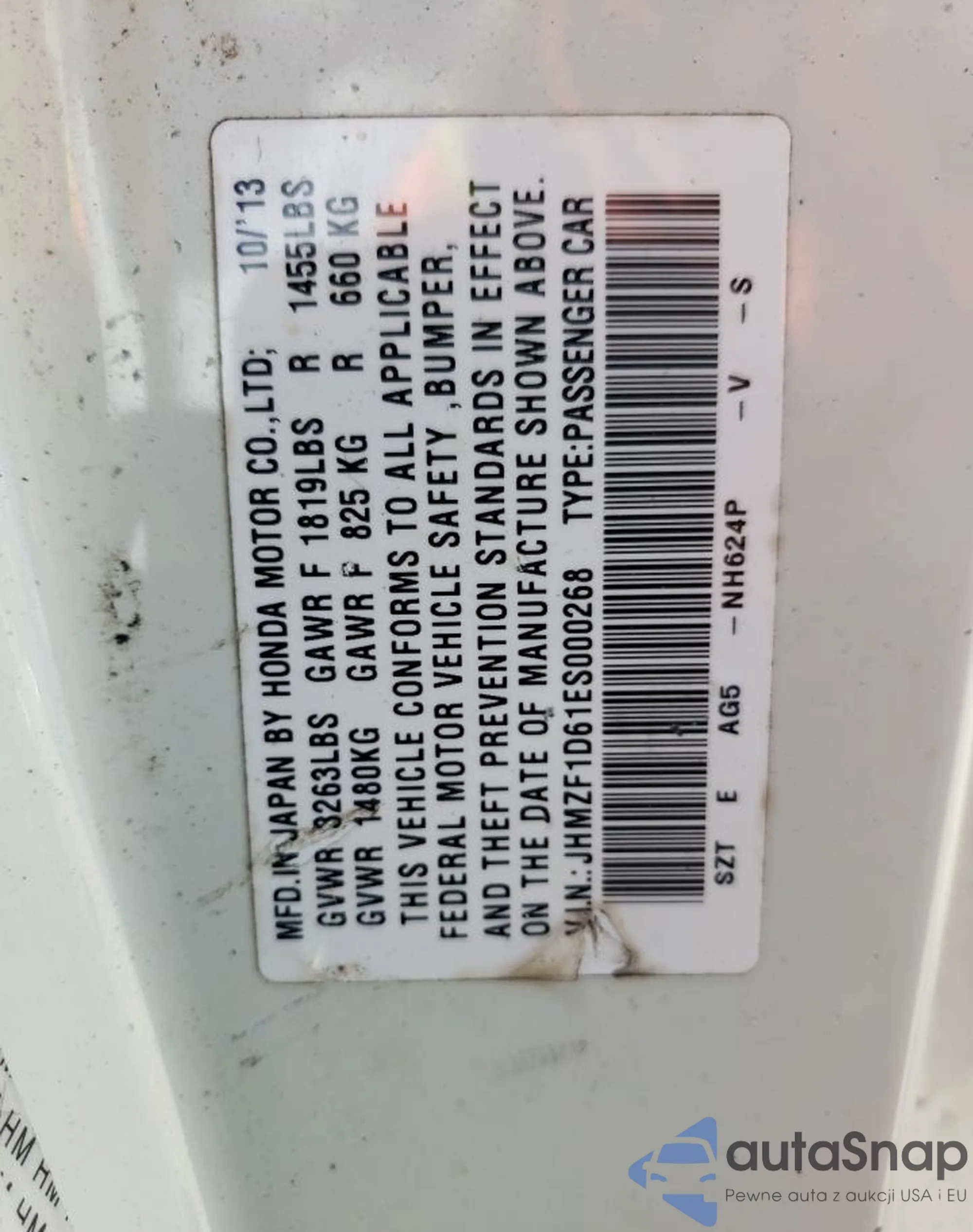 VIN: JHMZF1D61ES000268