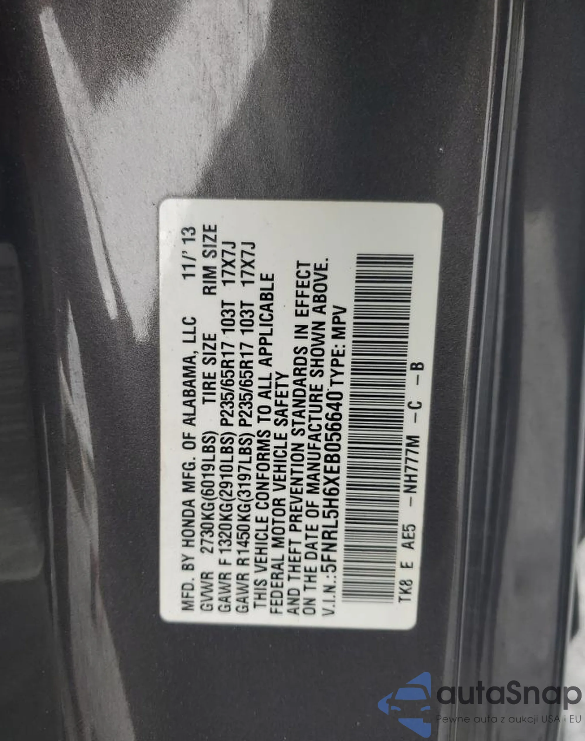 VIN: 5FNRL5H6XEB056640