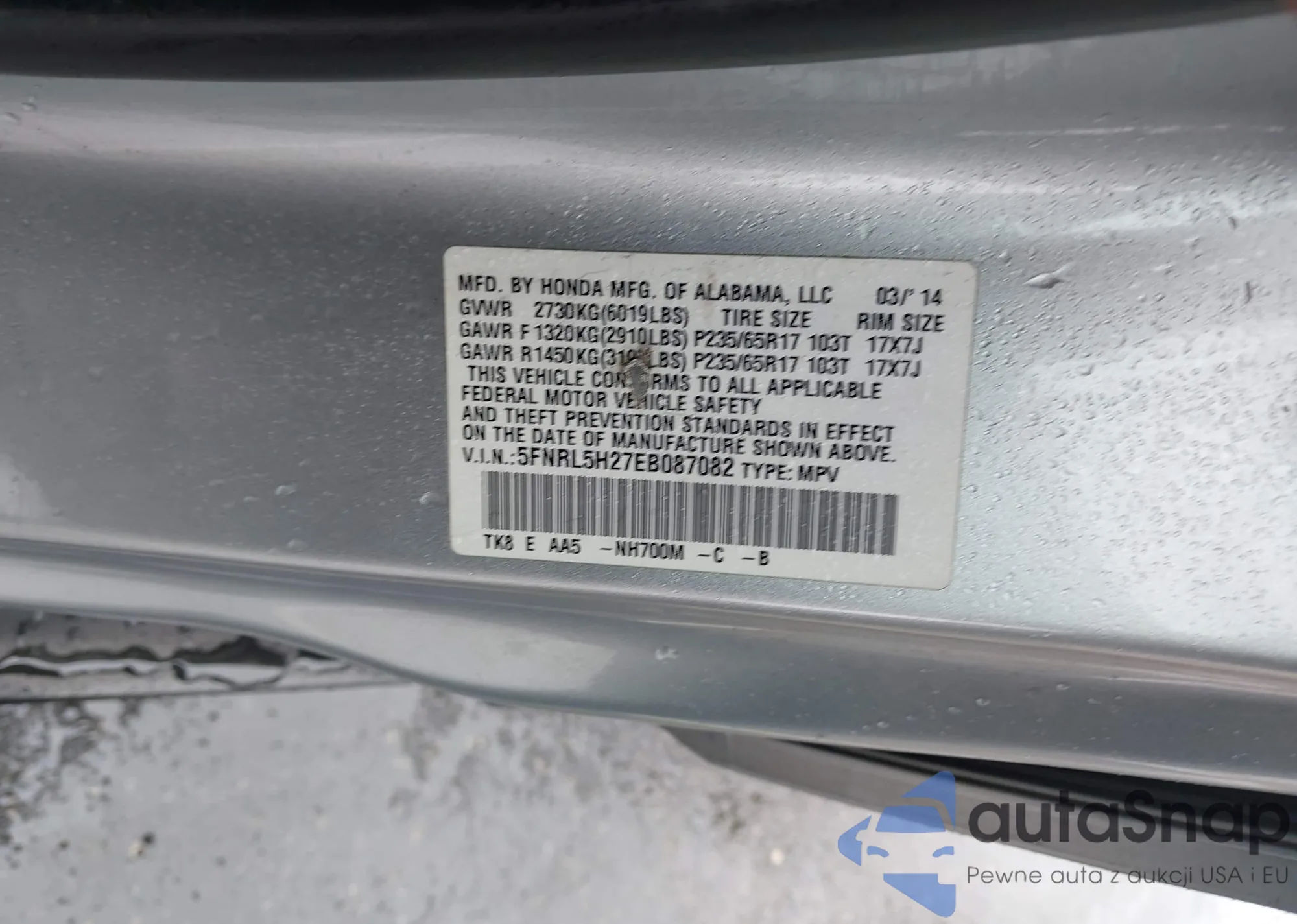 VIN: 5FNRL5H27EB087082
