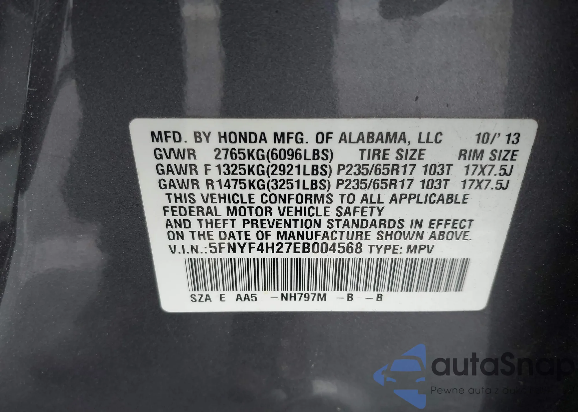 VIN: 5FNYF4H27EB004568