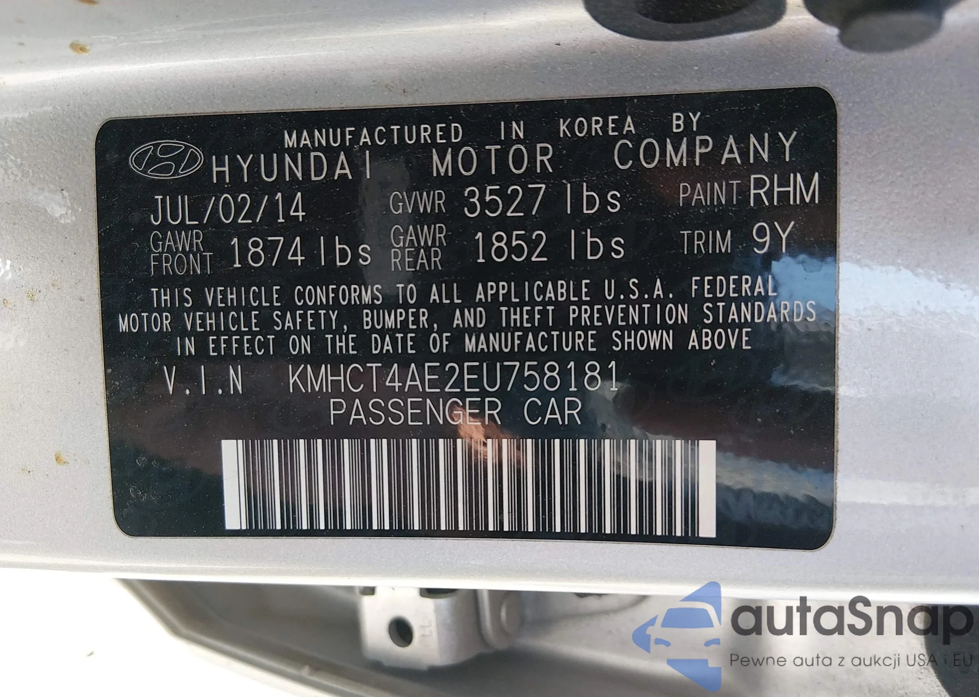 • VIN: KMHCT4AE2EU758181