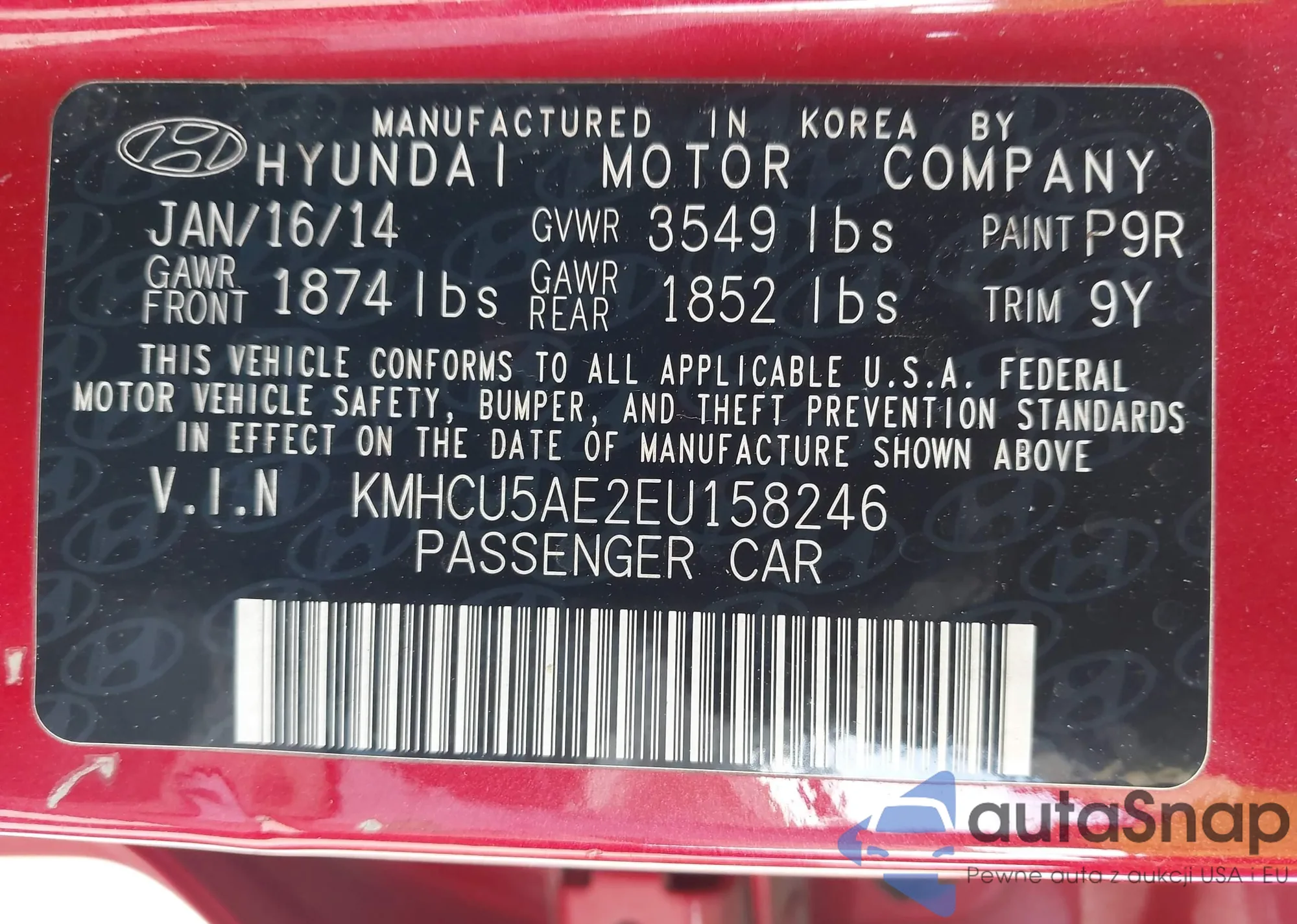 VIN: KMHCU5AE2EU158246