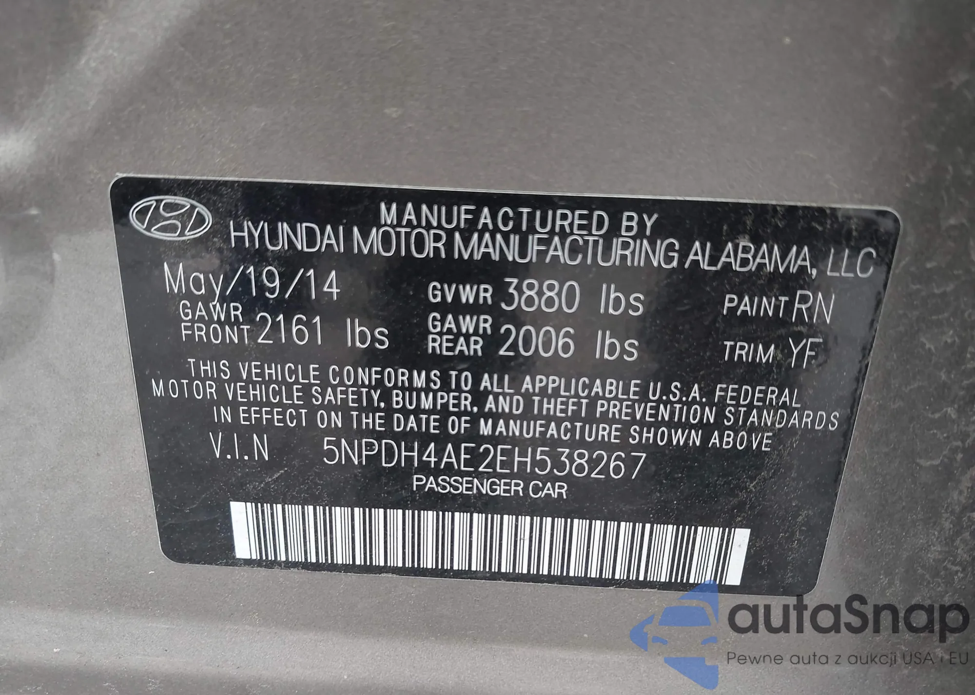 VIN: 5NPDH4AE2EH538267