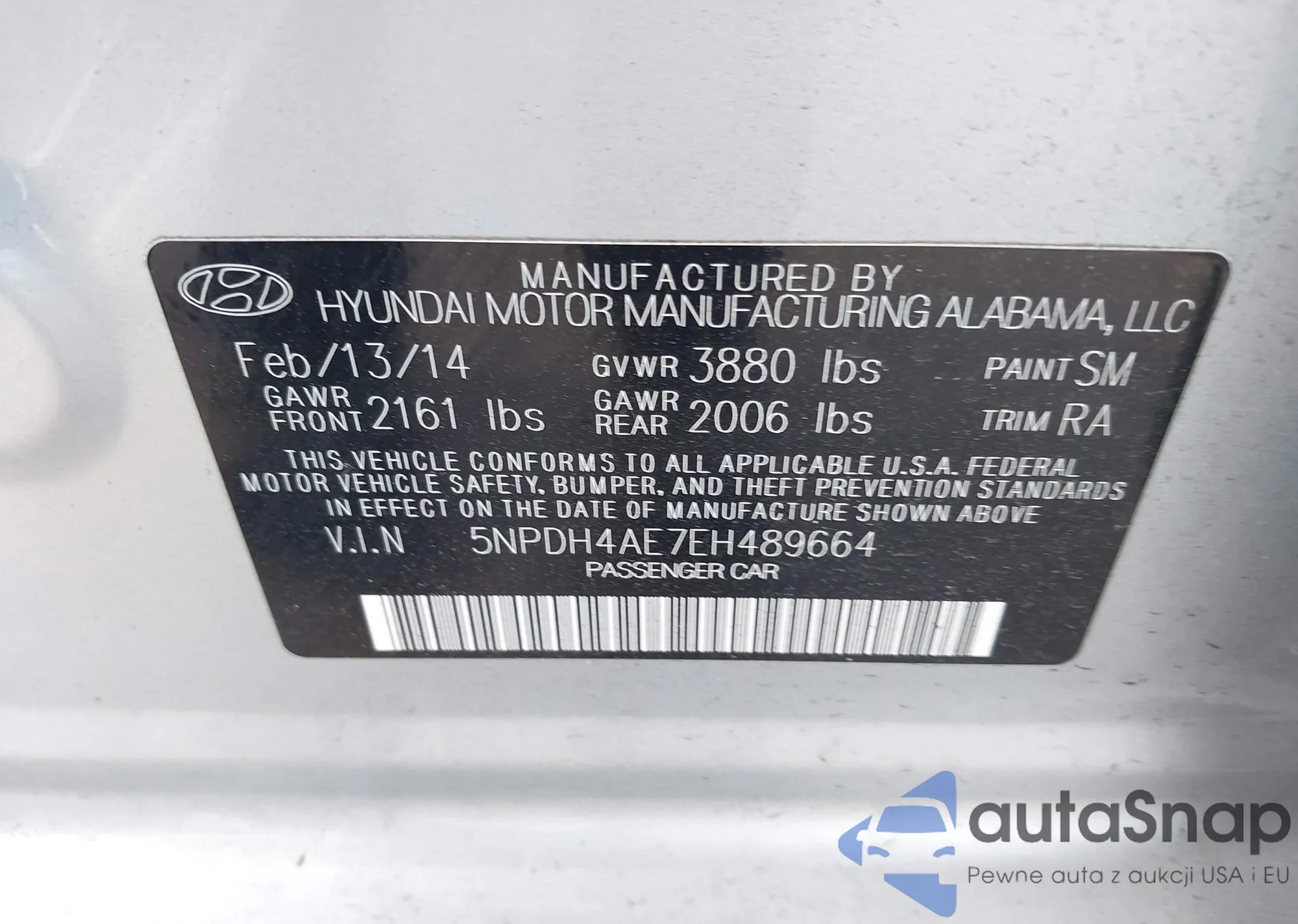 VIN: 5NPDH4AE7EH489664