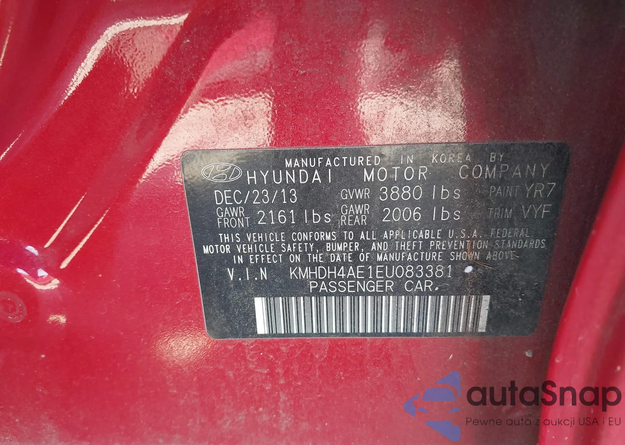 • VIN: KMHDH4AE1EU083381