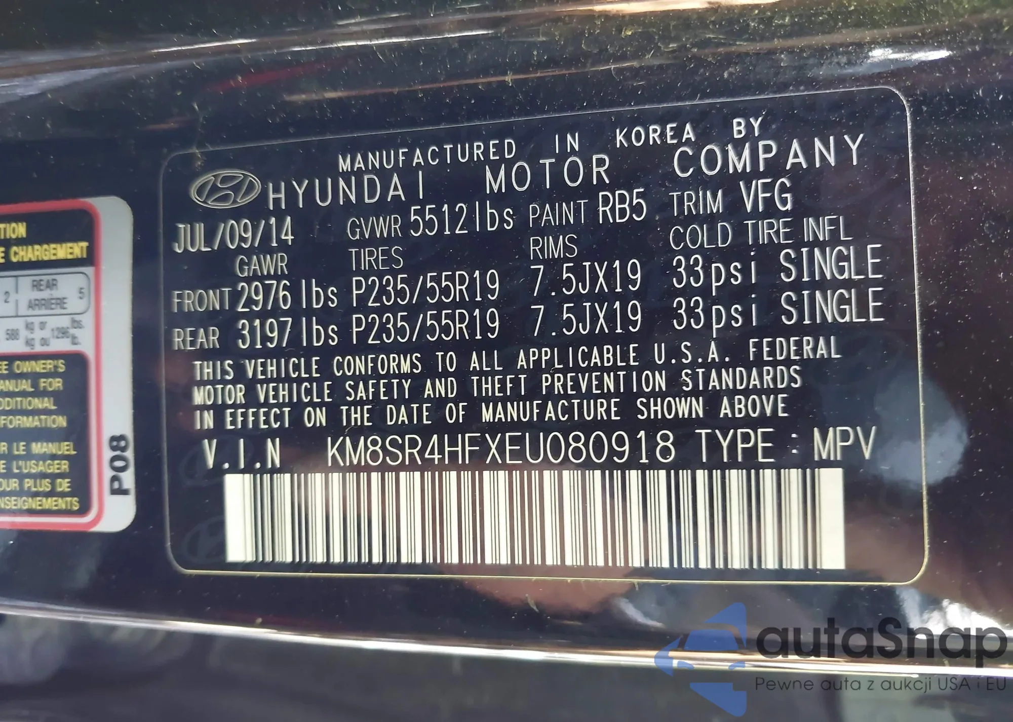 VIN: KM8SR4HFXEU080918