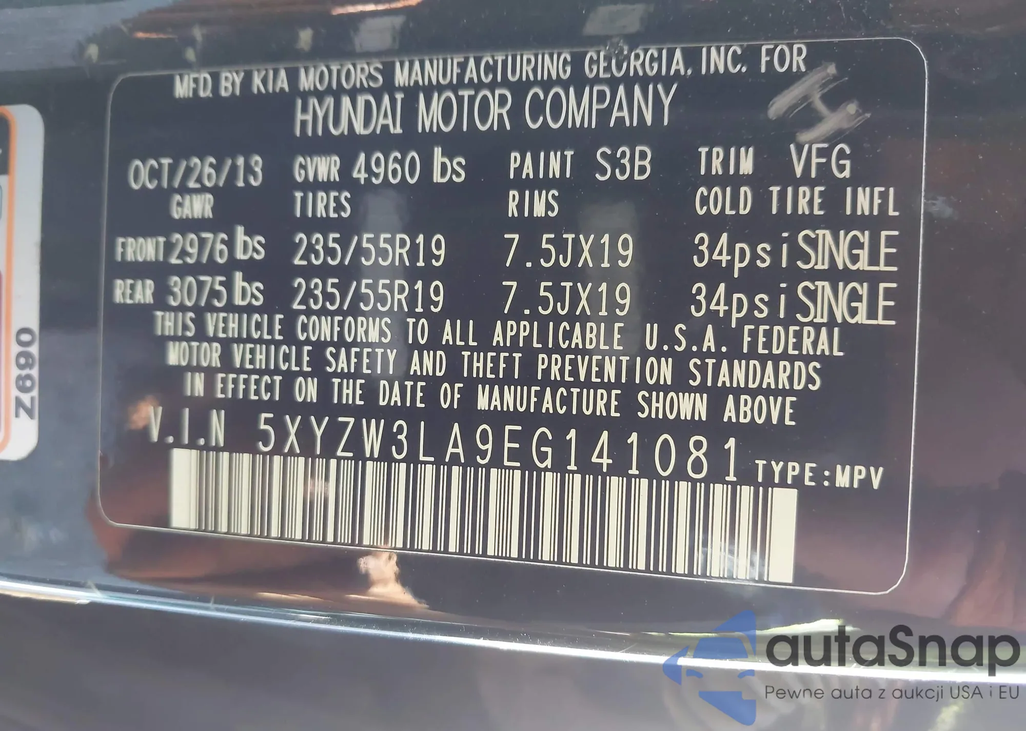 VIN: 5XYZW3LA9EG141081