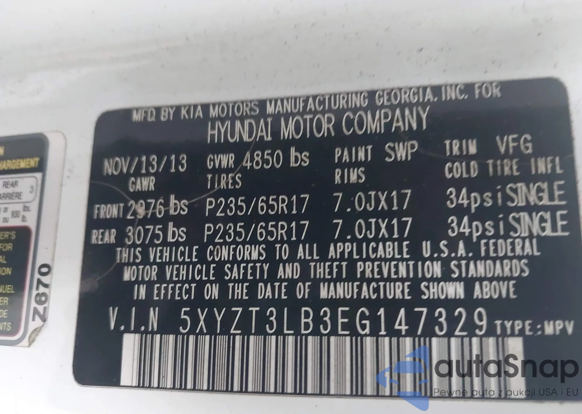 VIN: 5XYZT3LB3EG147329