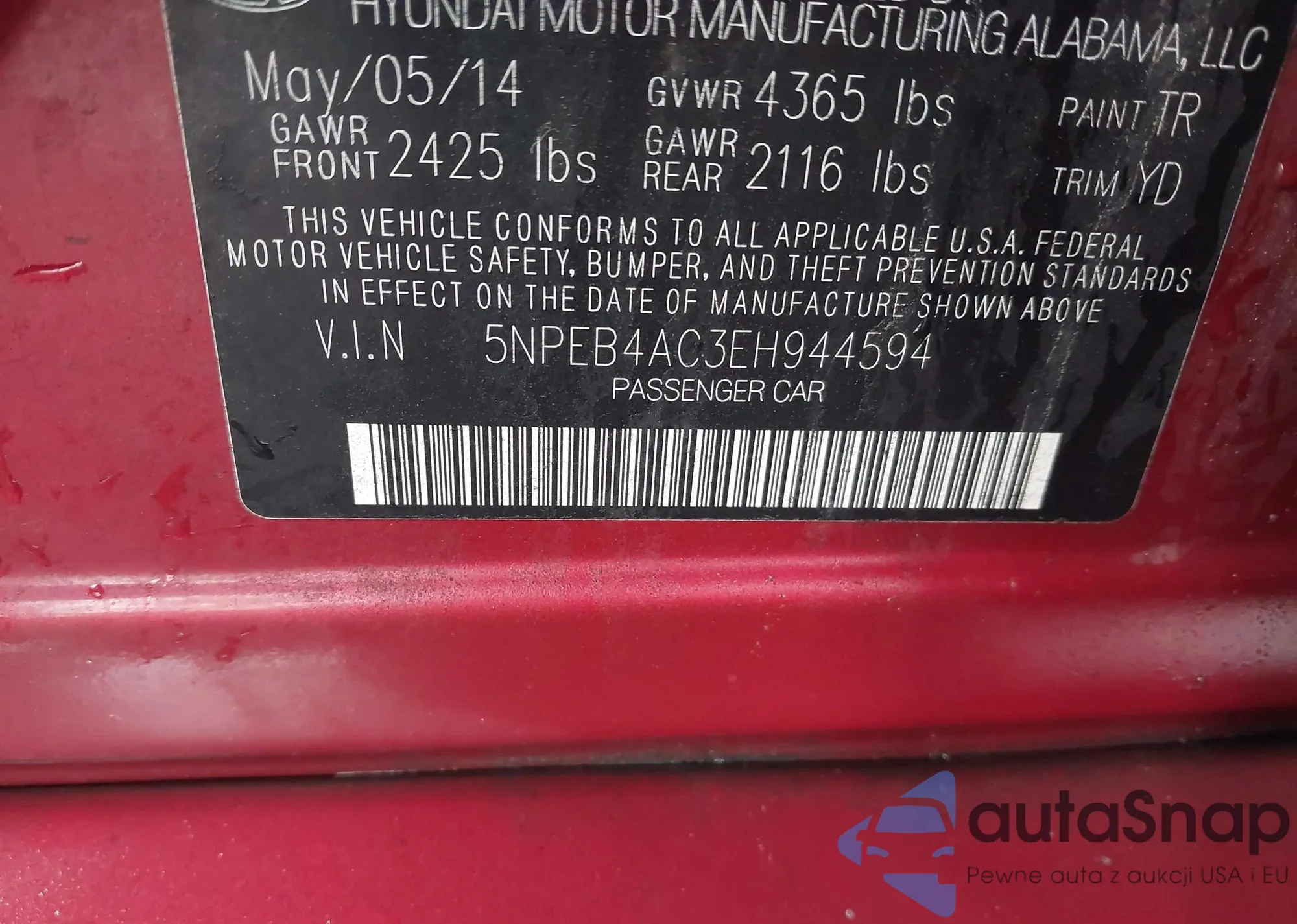 VIN: 5NPEB4AC3EH944594