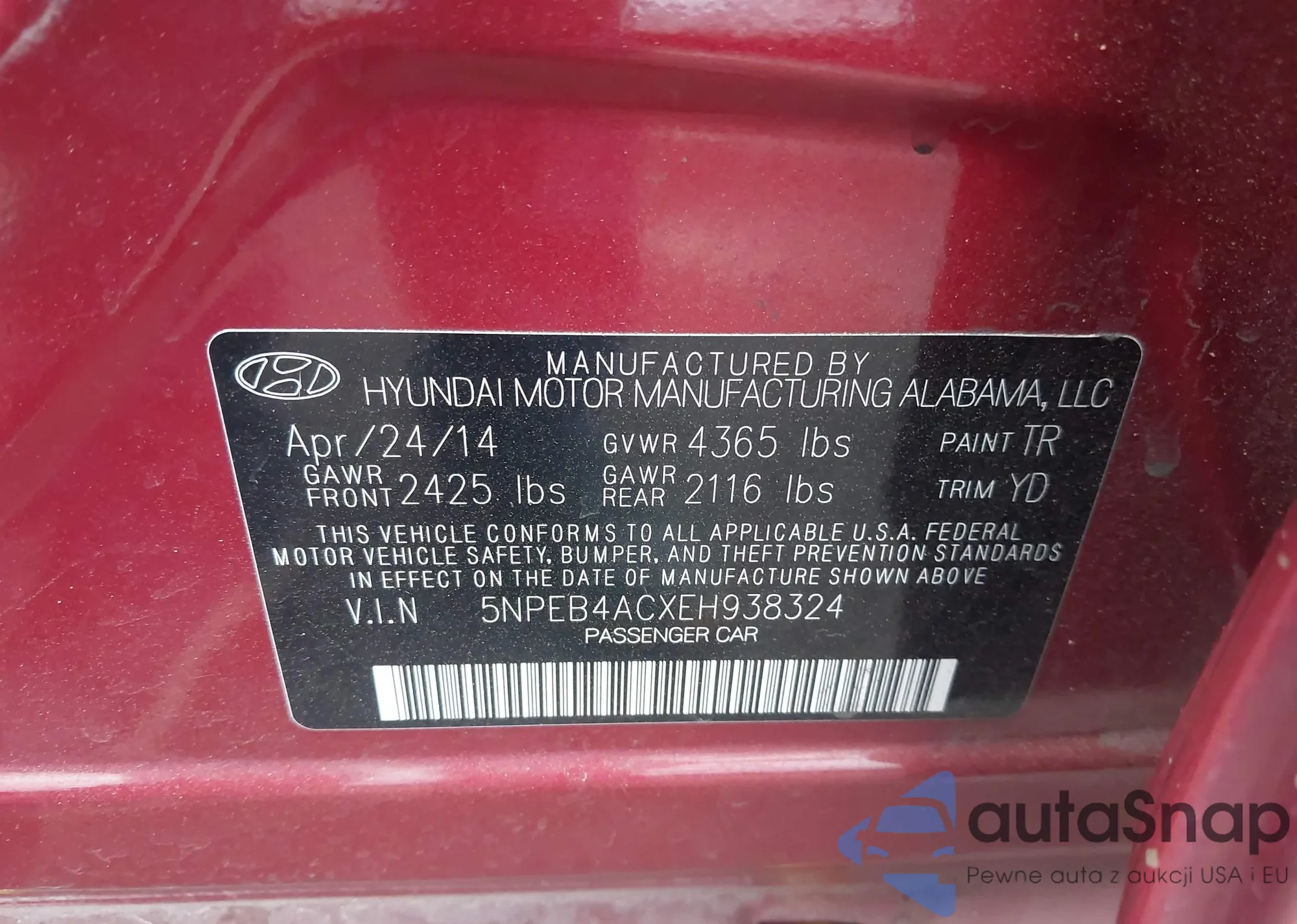 VIN: 5NPEB4ACXEH938324
