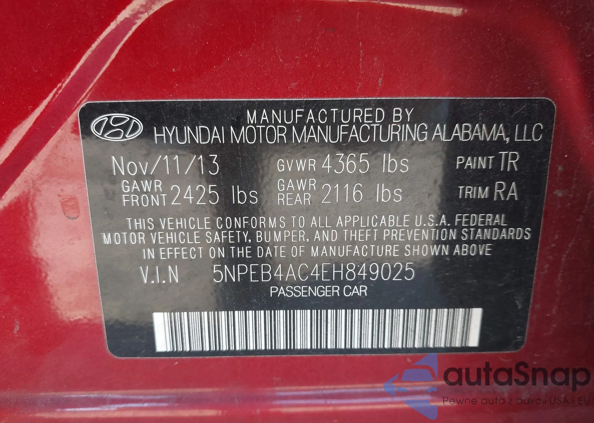 VIN: 5NPEB4AC4EH849025