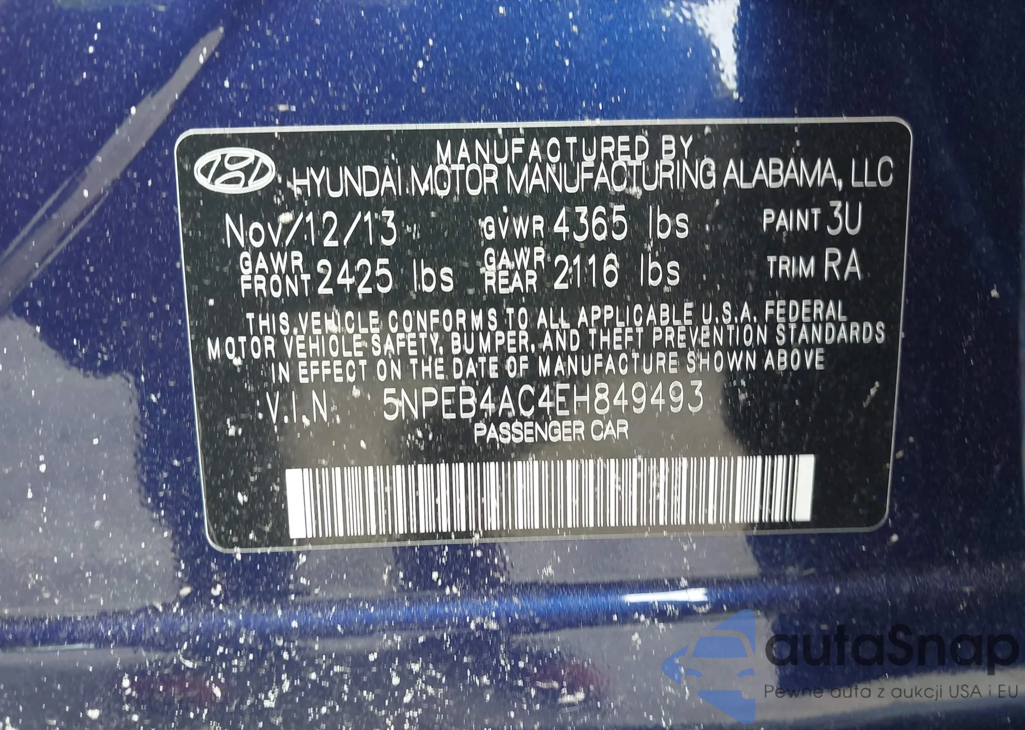 VIN: 5NPEB4AC4EH849493