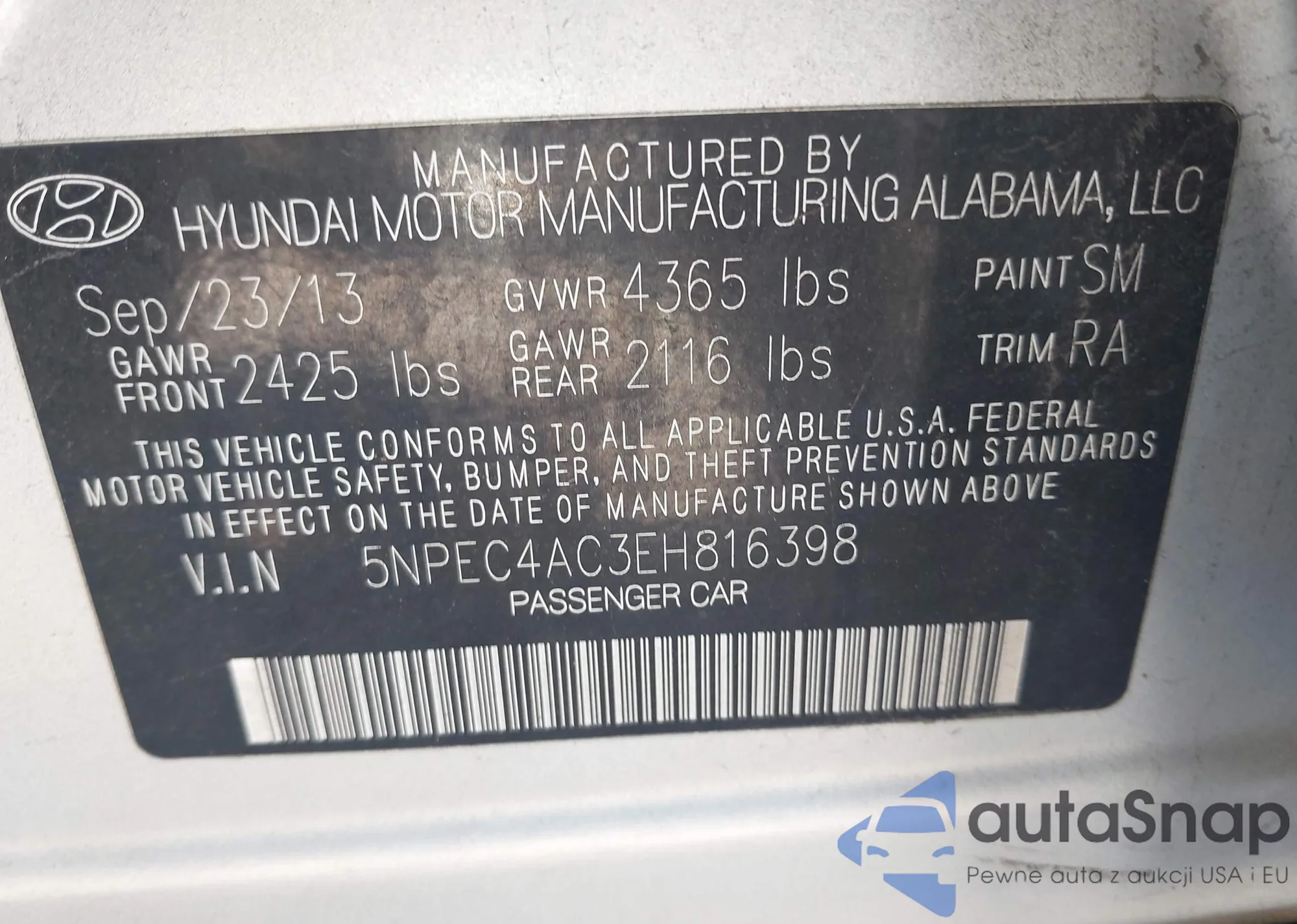 VIN: 5NPEC4AC3EH816398