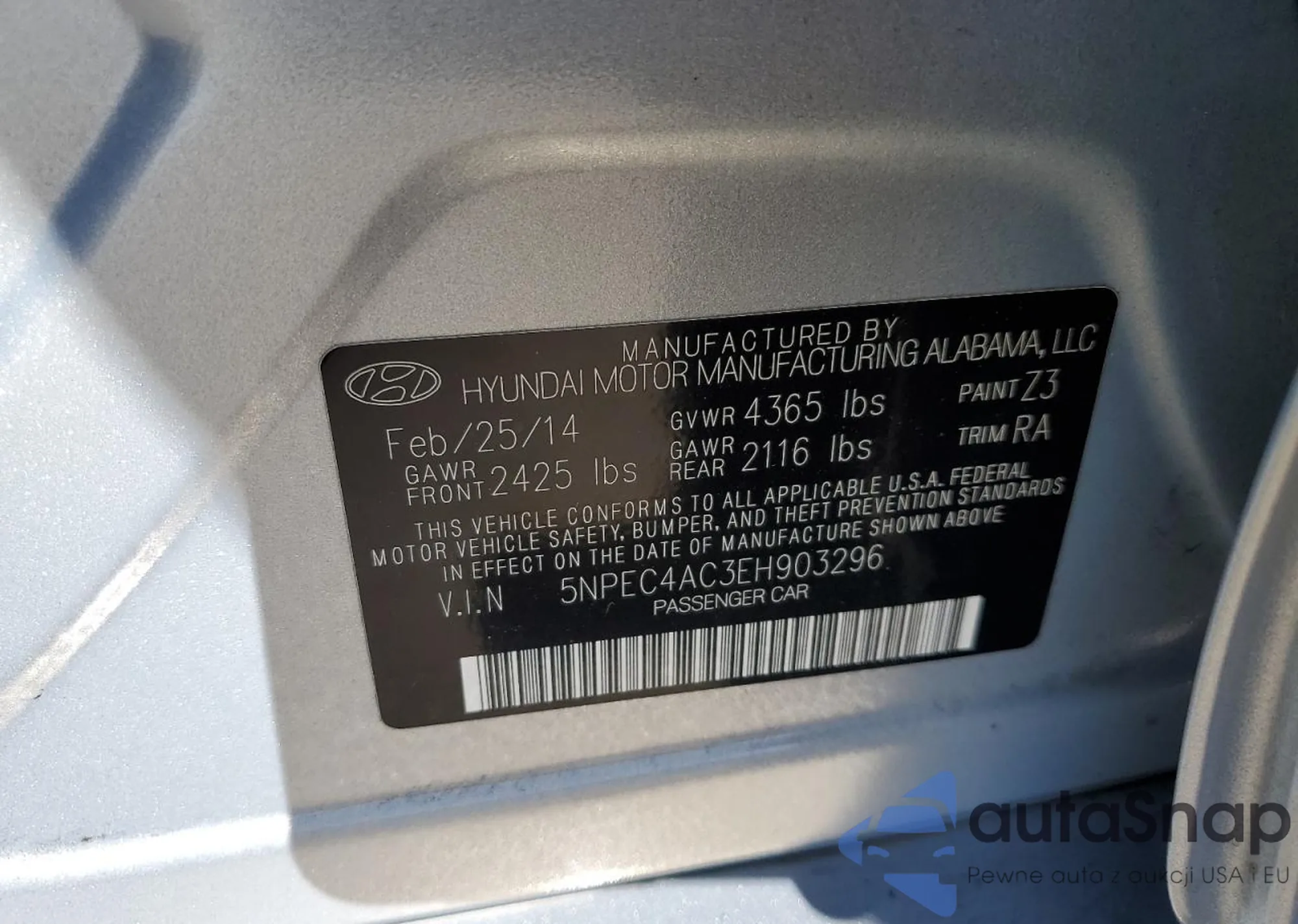 VIN: 5NPEC4AC3EH903296