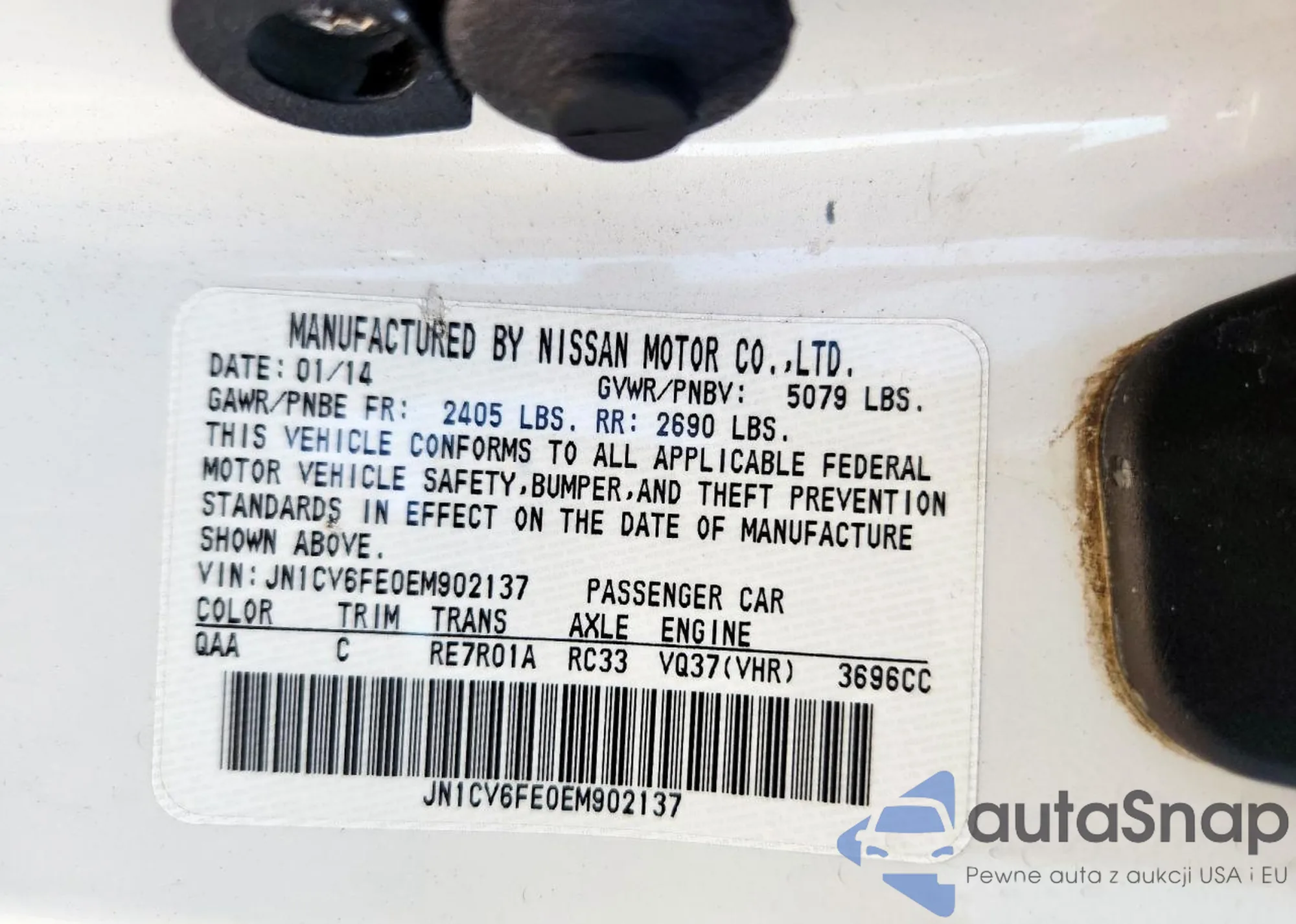 The car Infiniti Q60 2014 (VIN JN1CV6FE0EM902137) is sold by an unverified seller. We recommend checking the Carfax report and confirming registration possibilities before purchase.