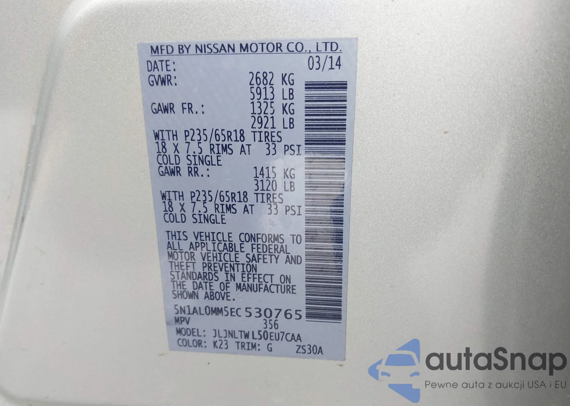 VIN: 5N1AL0MM5EC530765