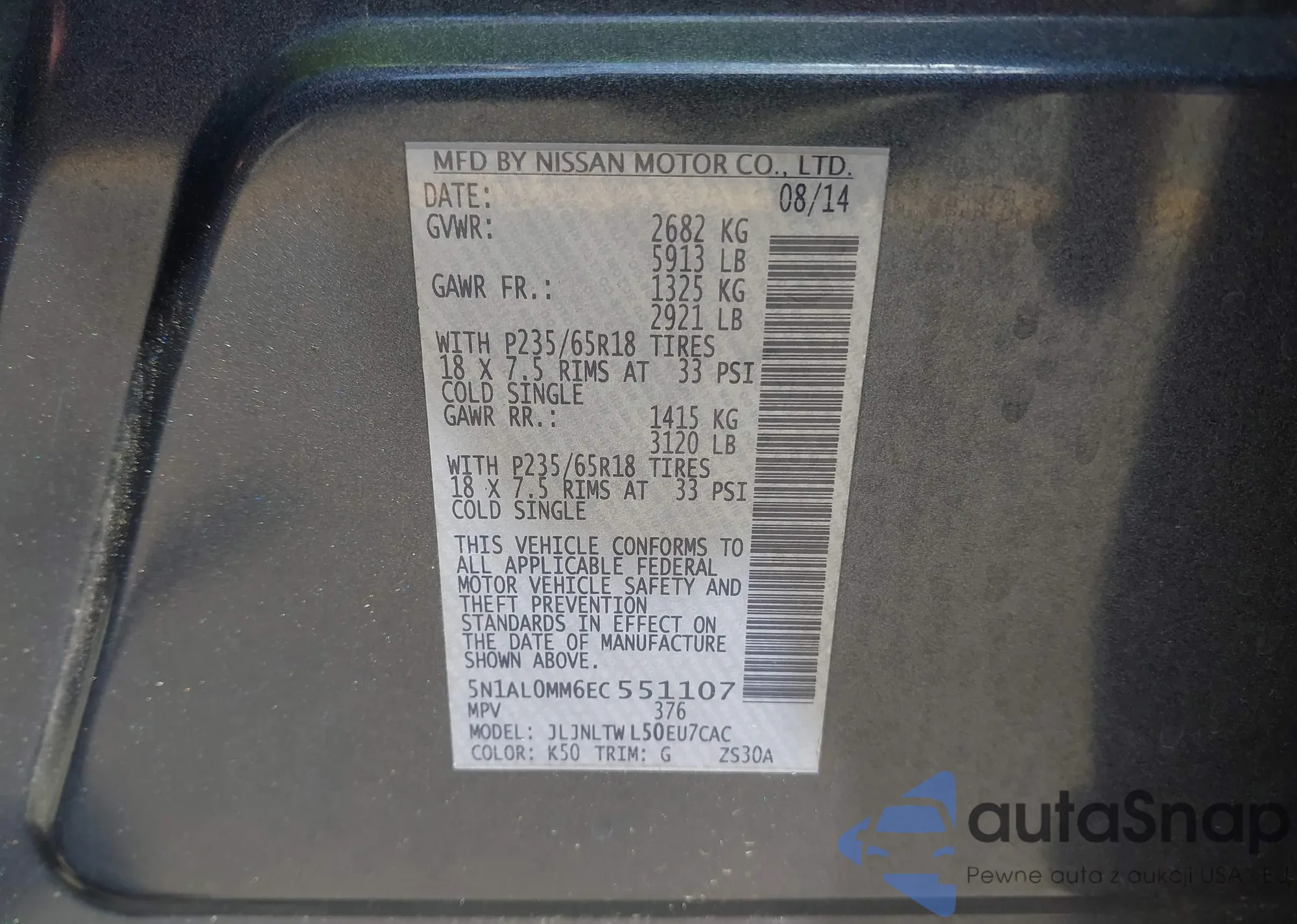 VIN: 5N1AL0MM6EC551107
