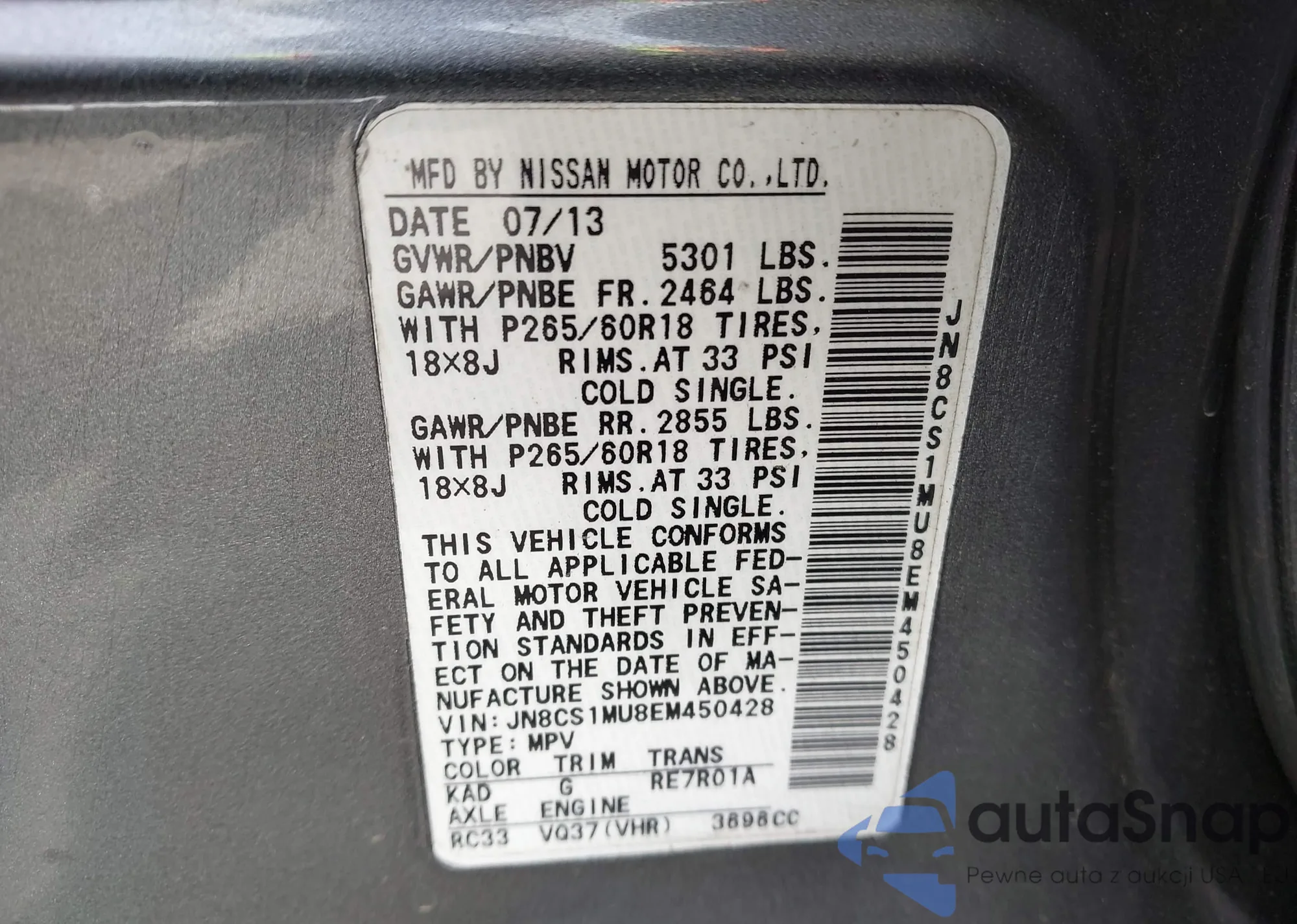 VIN: JN8CS1MU8EM450428