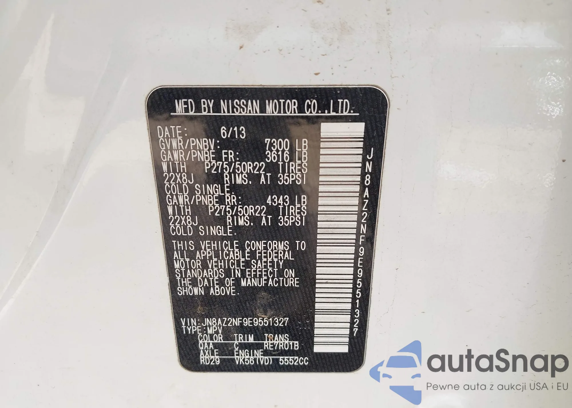 • VIN: JN8AZ2NF9E9551327