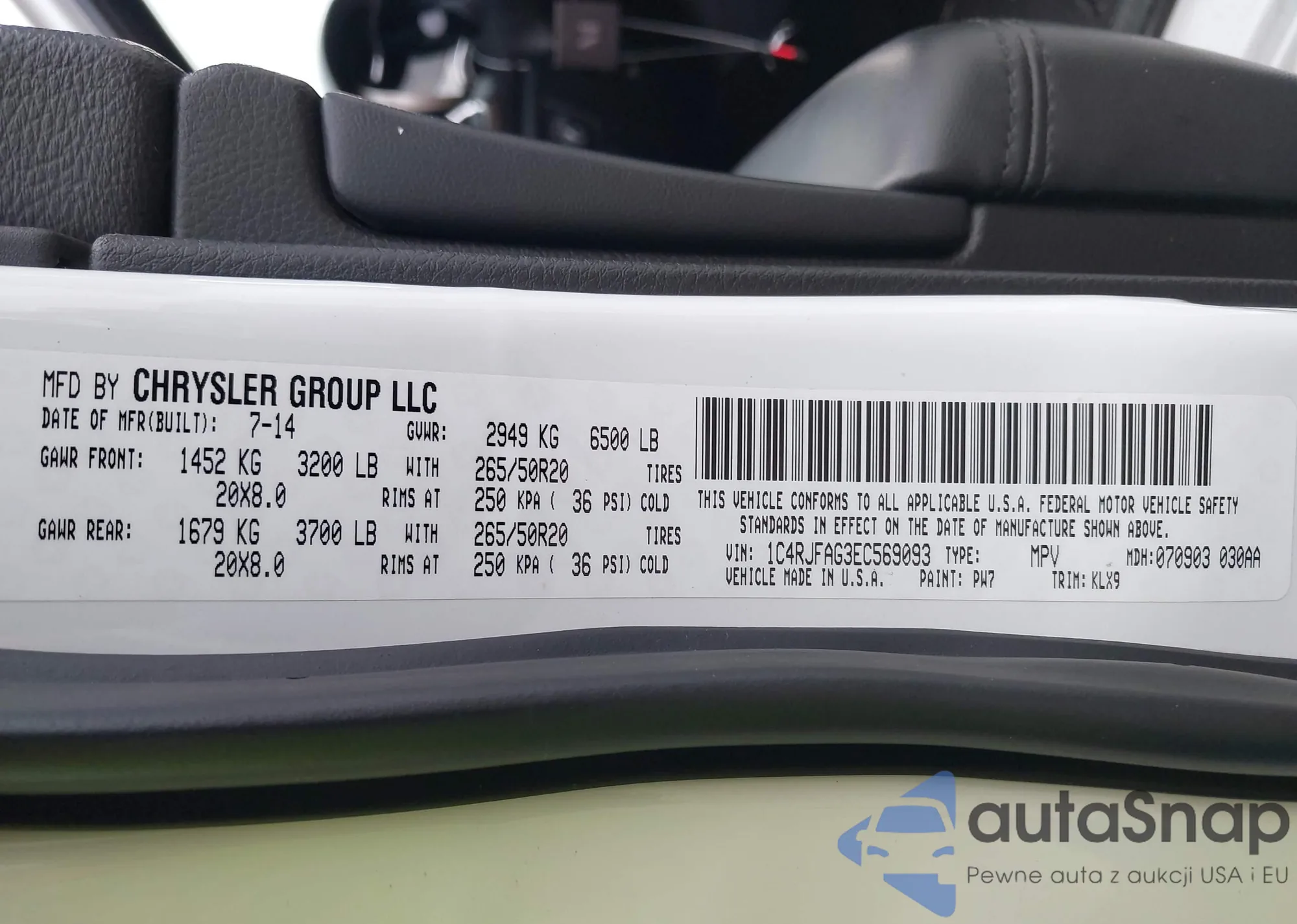 The car Jeep Grand Cherokee 2014 (VIN 1C4RJFAG3EC569093) has not been auctioned before. The documents are clean, and the mileage matches or is below the market average. Sold by an insurance company – we recommend purchase. Delivery to the port will take approx. 6–8 weeks.
