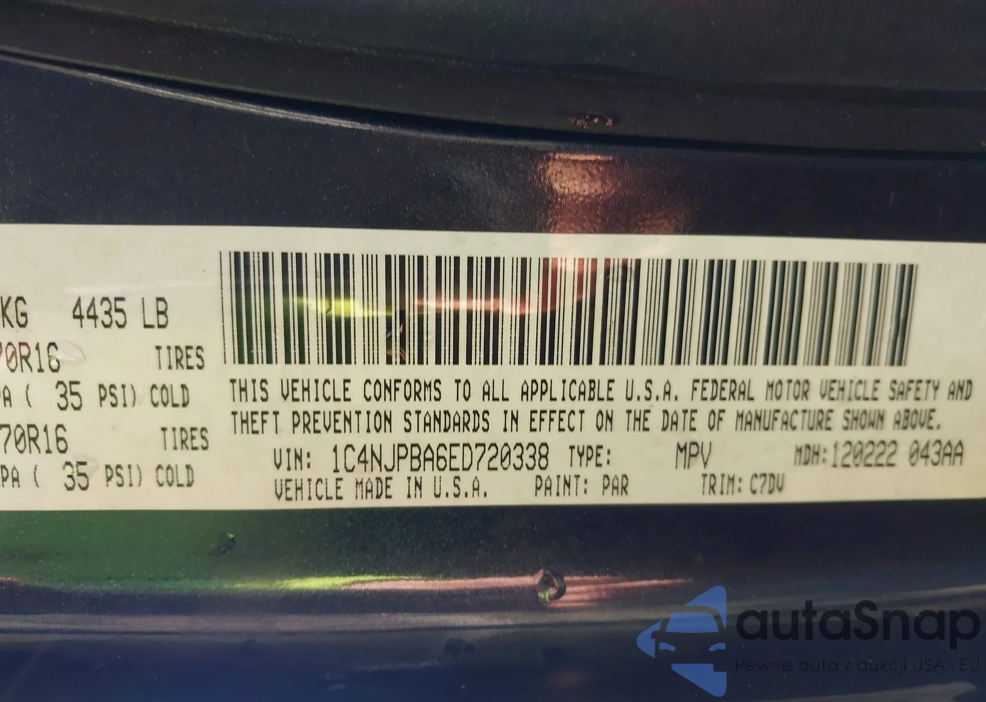 The car Jeep Liberty (Patriot) 2014 (VIN 1C4NJPBA6ED720338) has not been auctioned before. The documents are clean, and the mileage matches or is below the market average. Sold by an insurance company – we recommend purchase. Delivery to the port will take approx. 6–8 weeks.