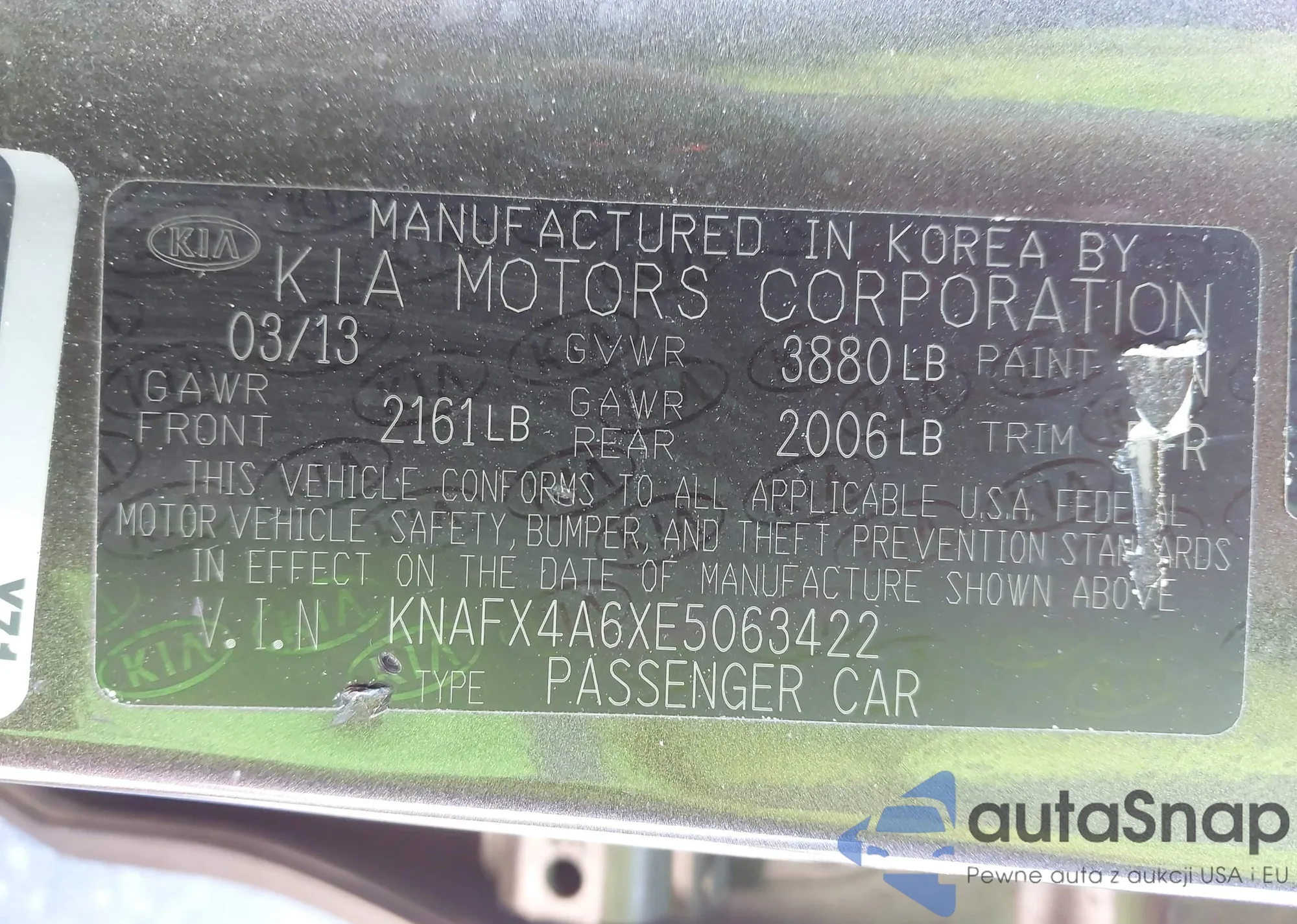 VIN: KNAFX4A6XE5063422
