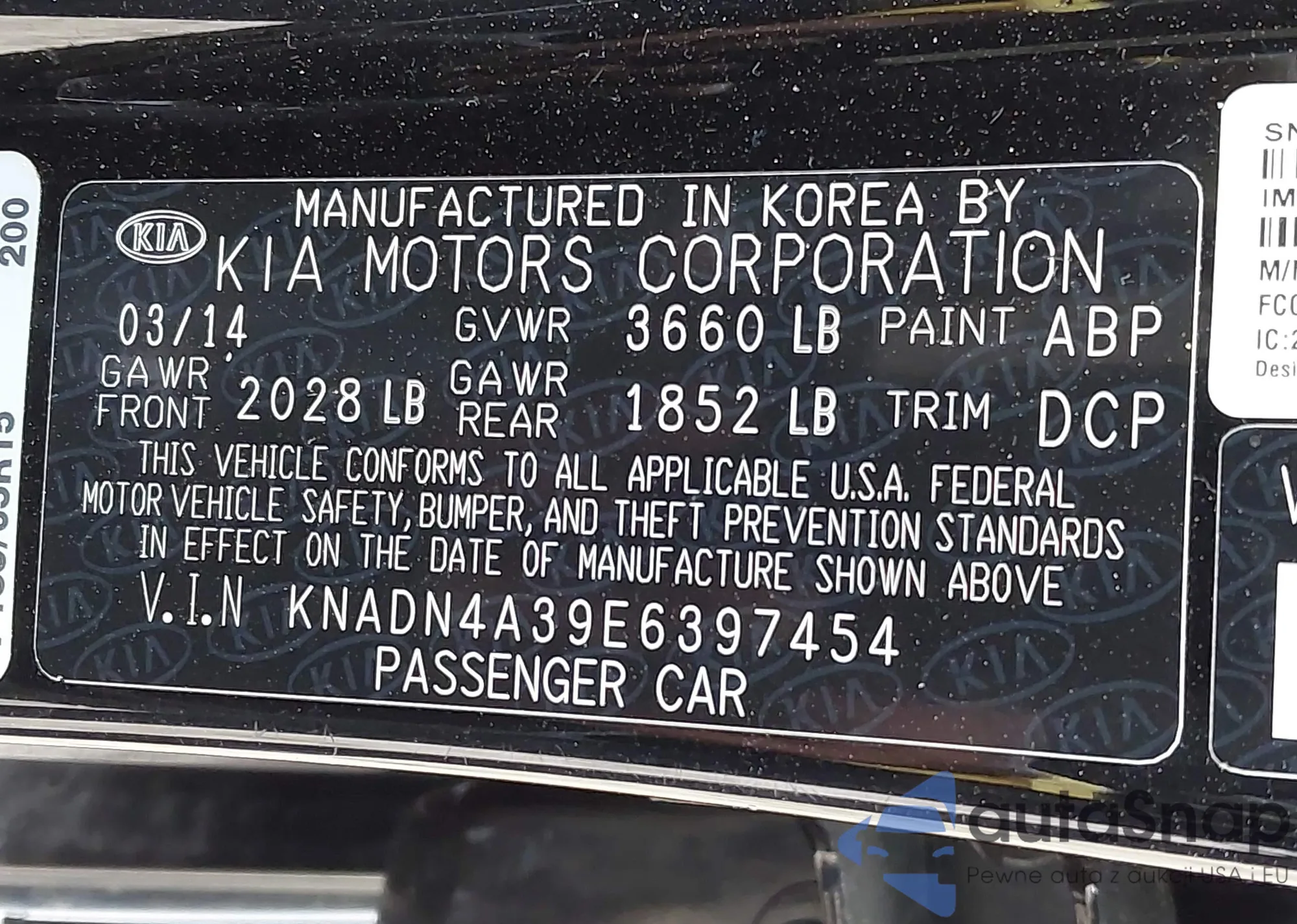 • VIN: KNADN4A39E6397454