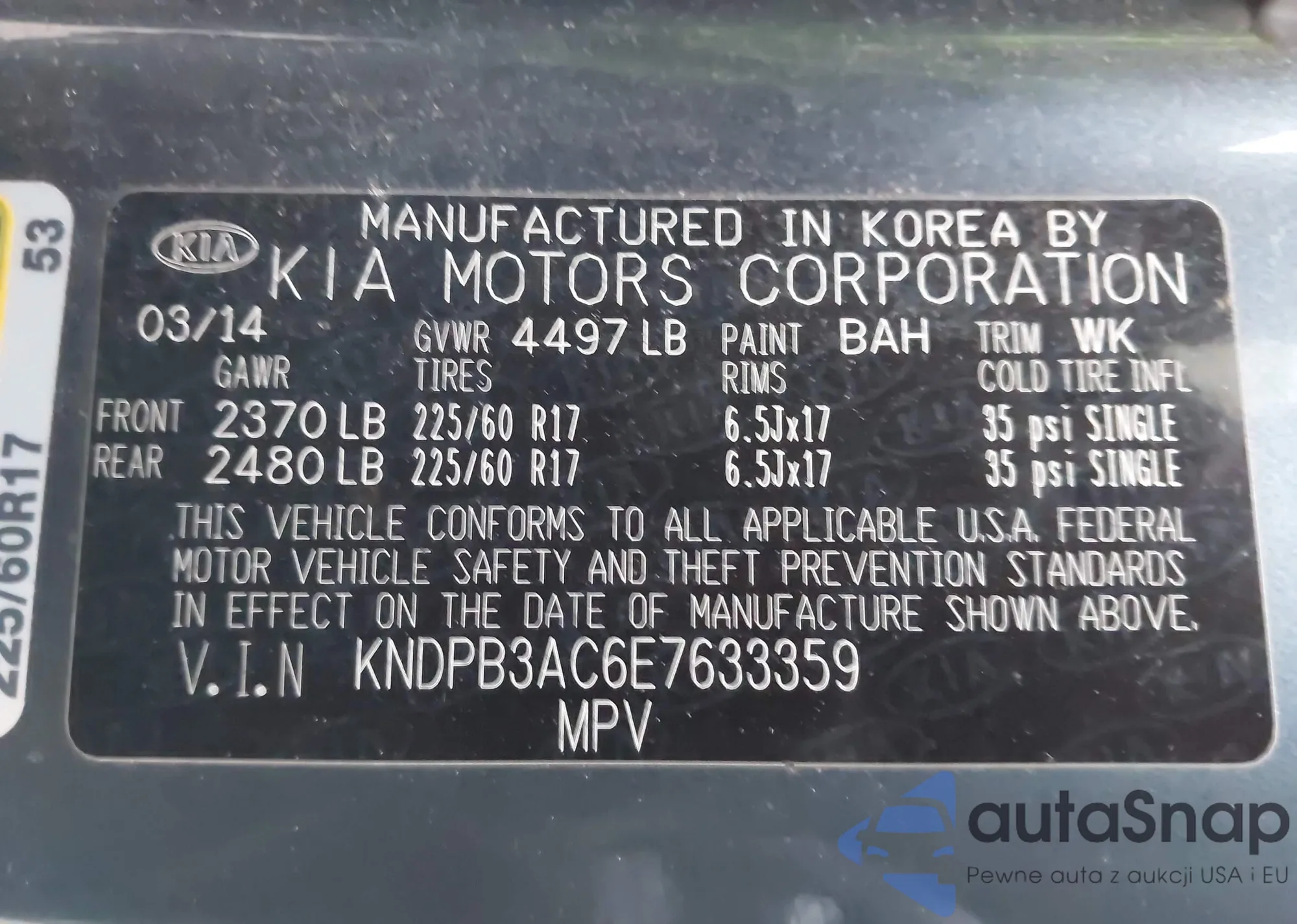 • VIN: KNDPB3AC6E7633359