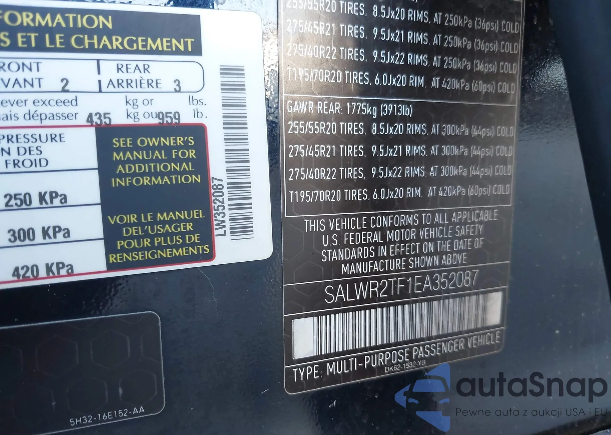 • VIN: SALWR2TF1EA352087