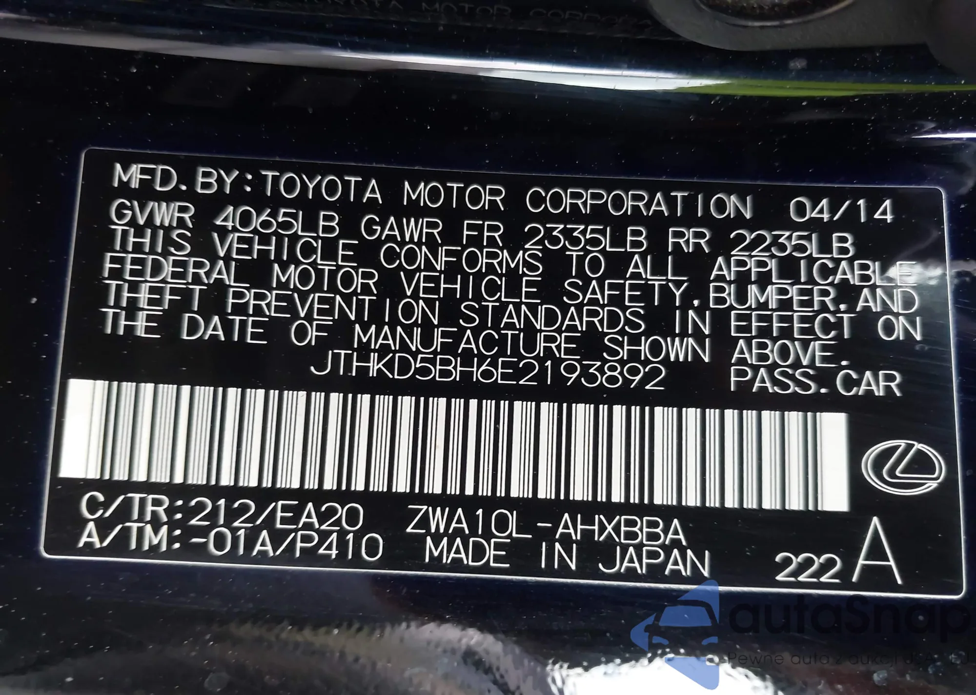 VIN: JTHKD5BH6E2193892