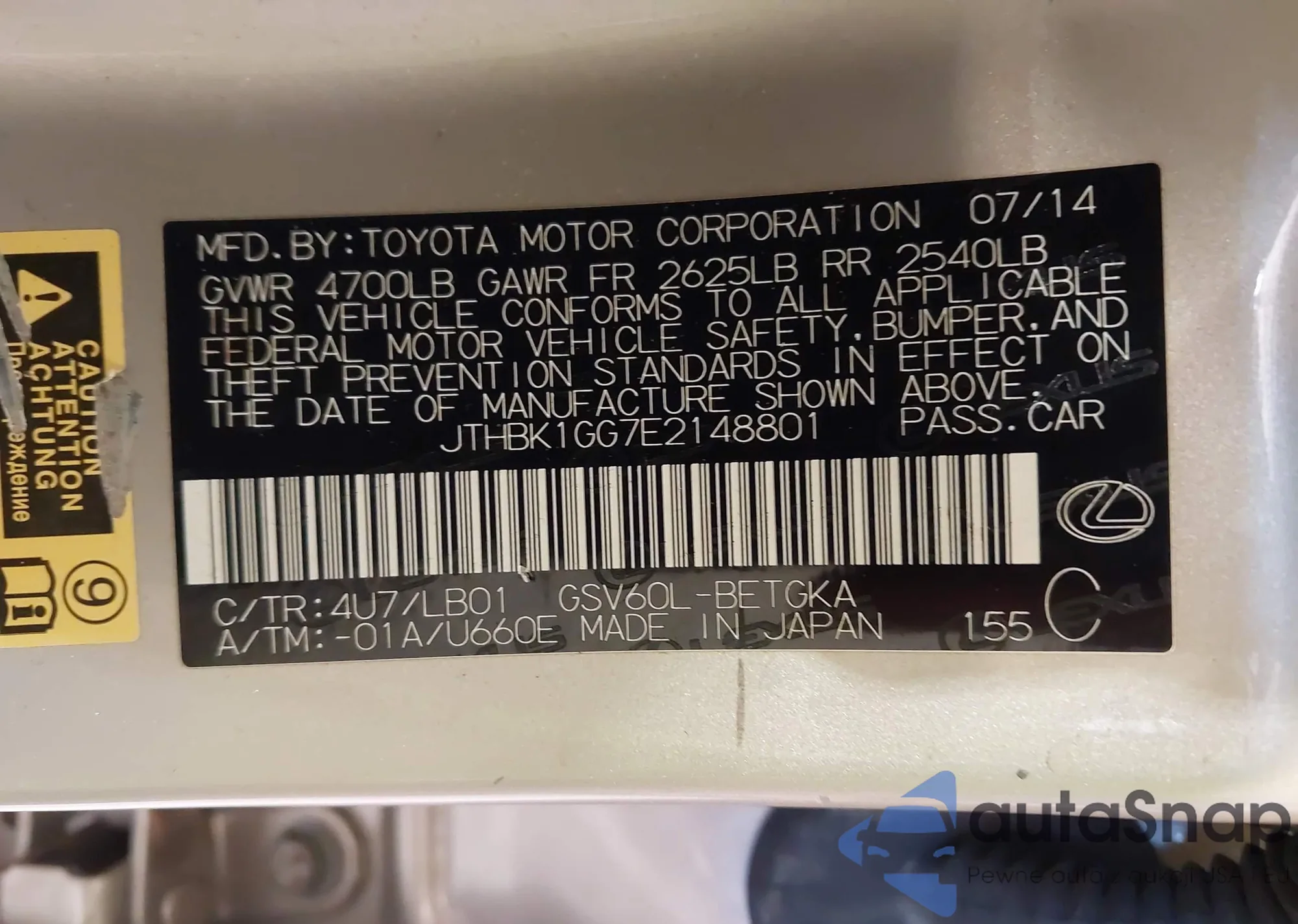 VIN: JTHBK1GG7E2148801