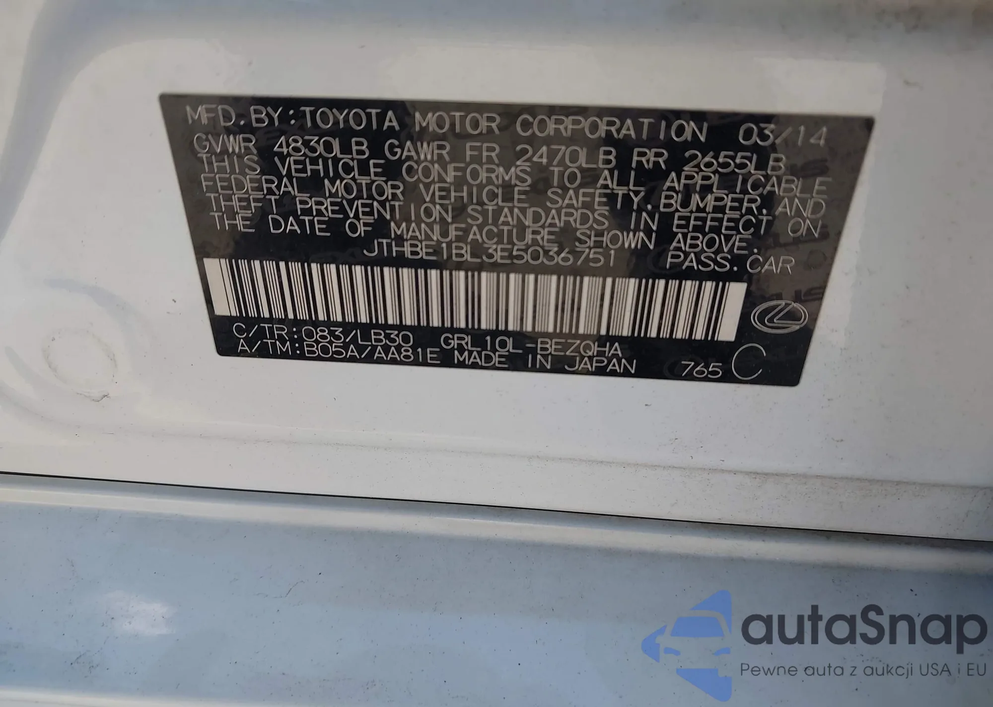 VIN: JTHBE1BL3E5036751