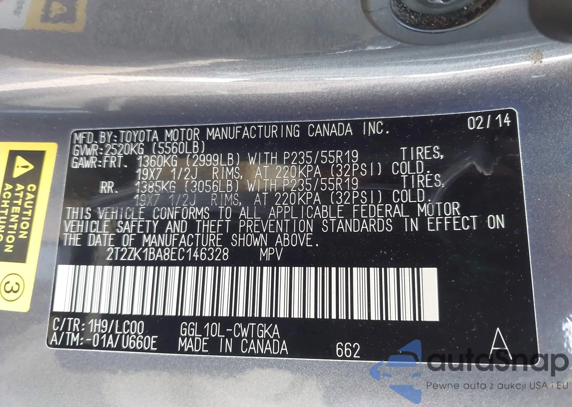 VIN: 2T2ZK1BA8EC146328