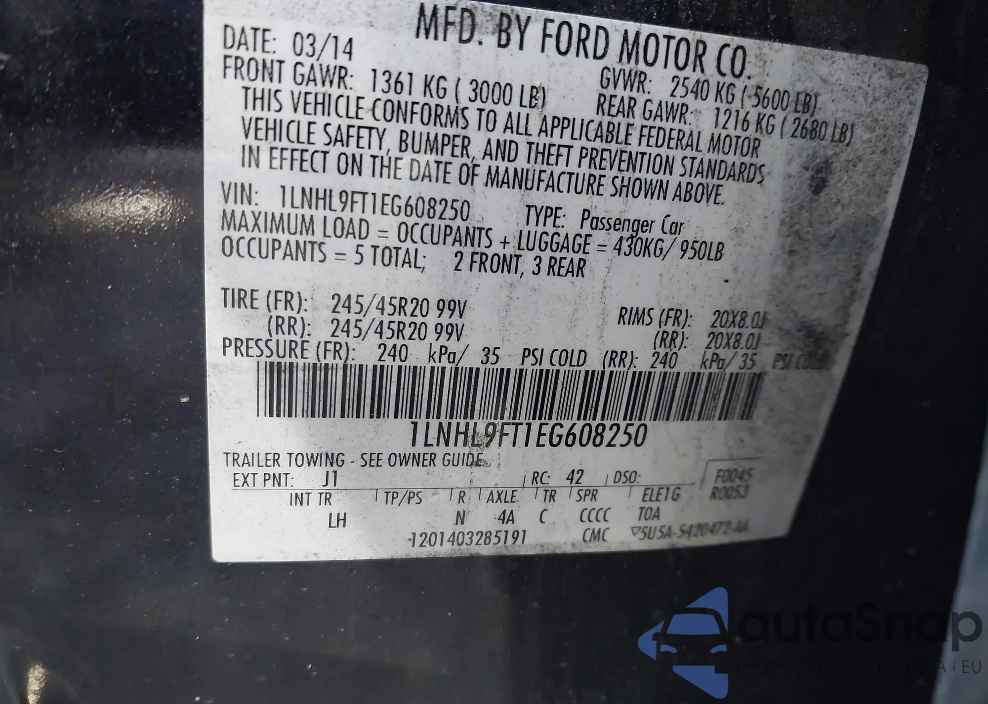 VIN: 1LNHL9FT1EG608250